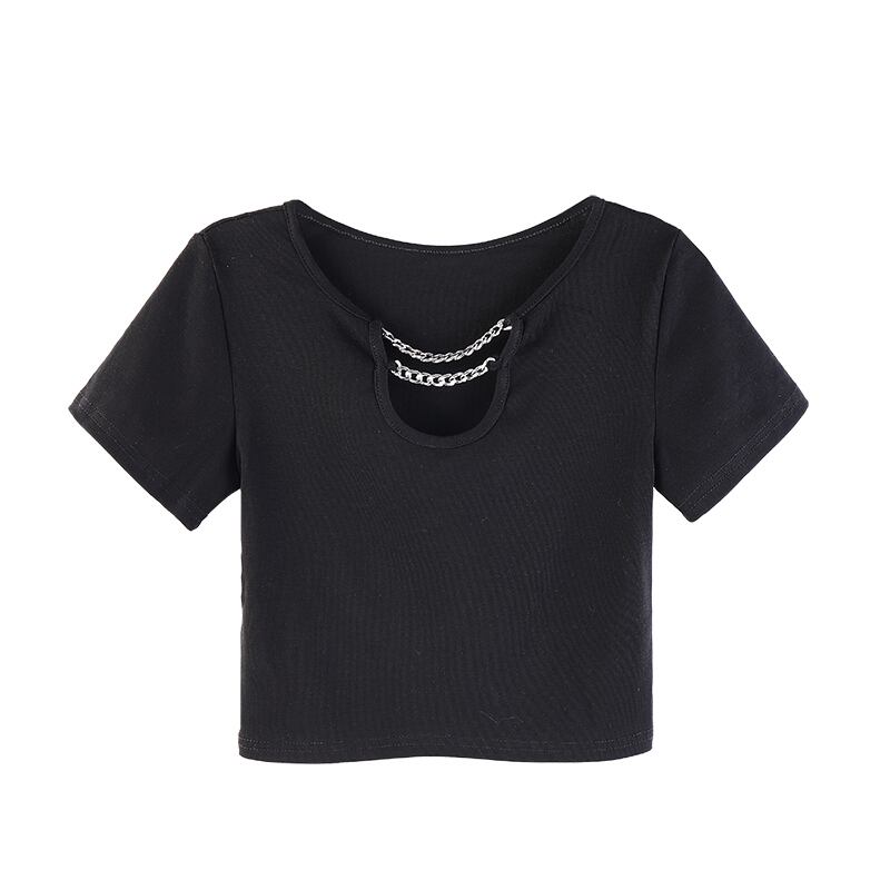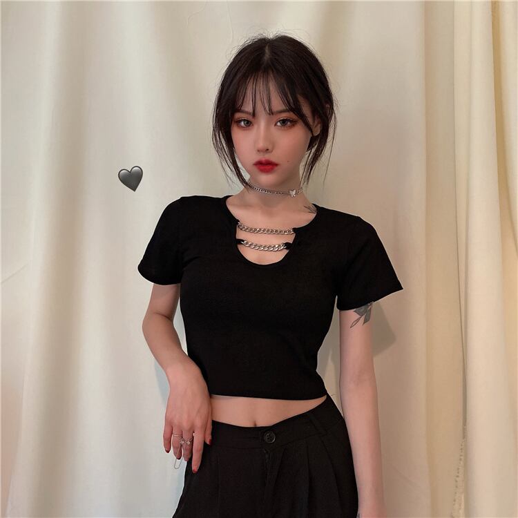 ブラックショートTシャツ サマークロップドハイウェストウェストトップス 夏物 タオタオイ18873890867