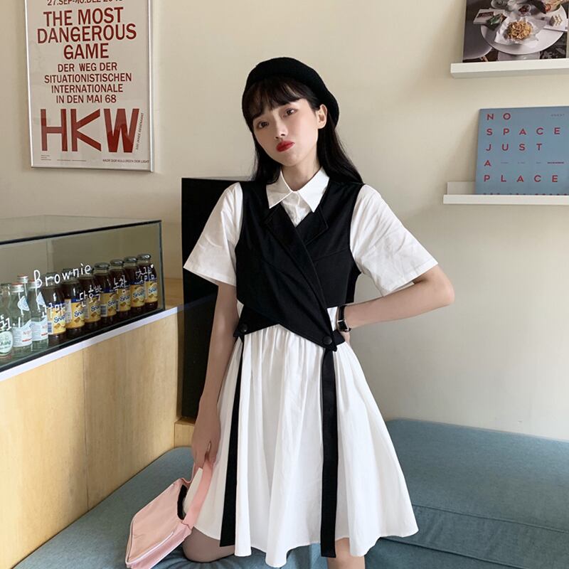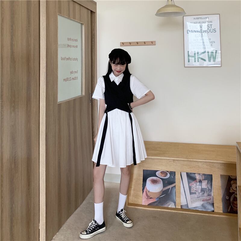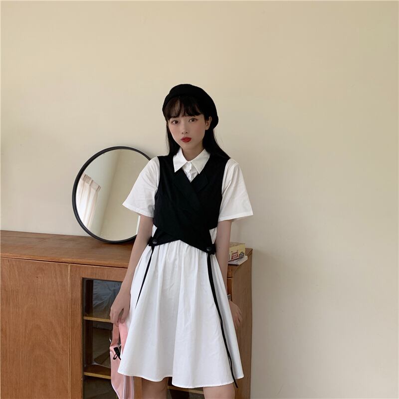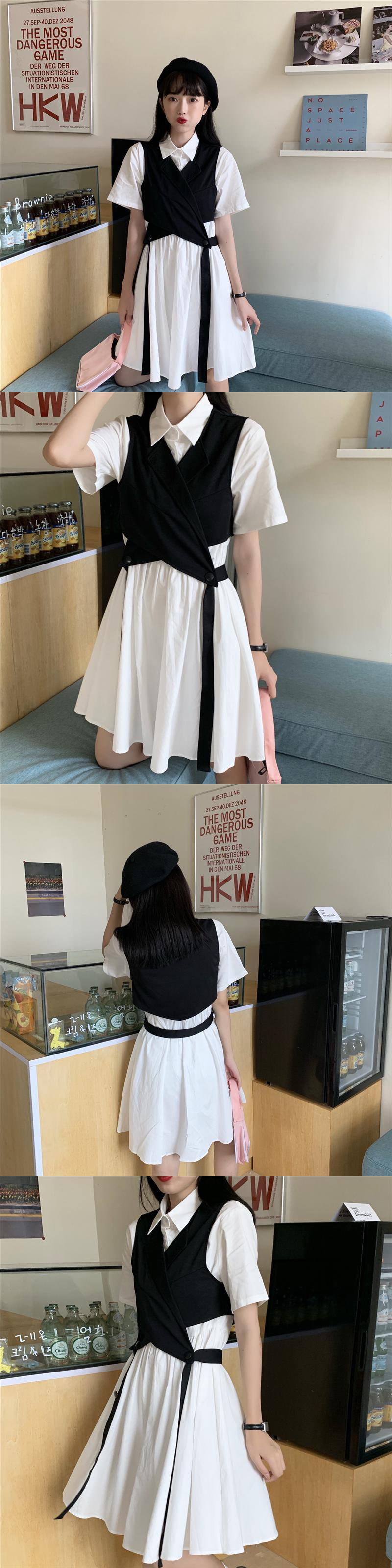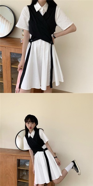 色:白いワンピースのワンピース,ブラックベストワンピース