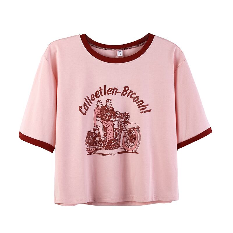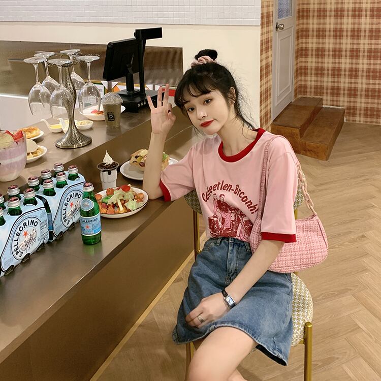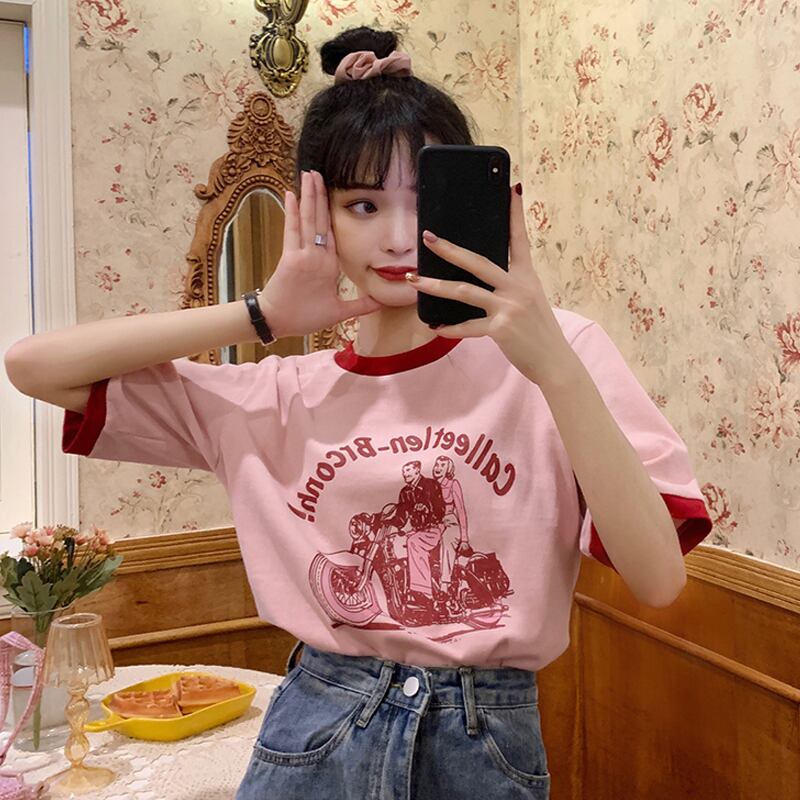 ショートTシャツ サマープリント柄トップス ピンク 夏物 タオタオイ92649981181