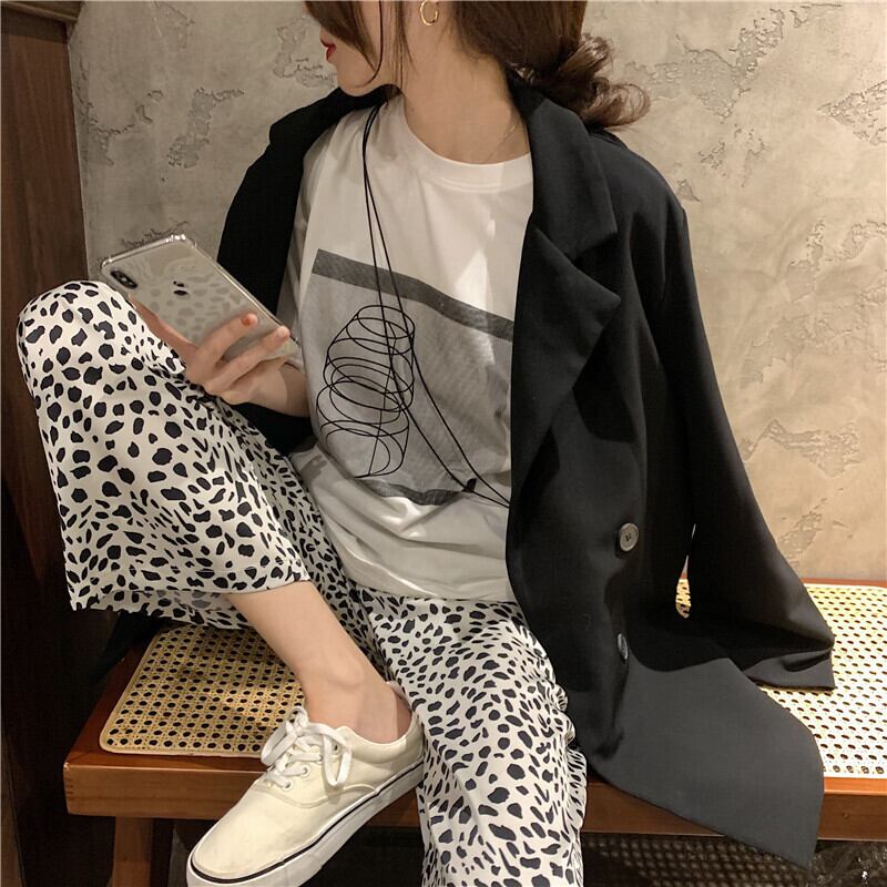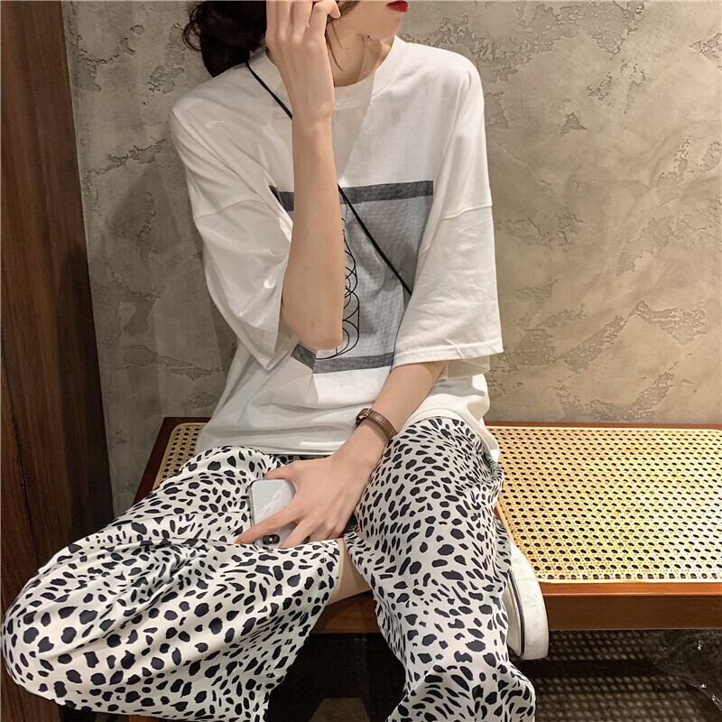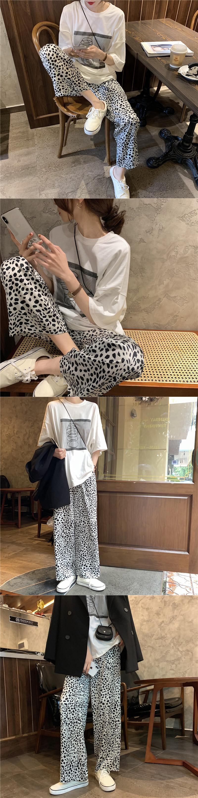 色:ホワイトTシャツシングルピース,ヒョウパンツのワンピース