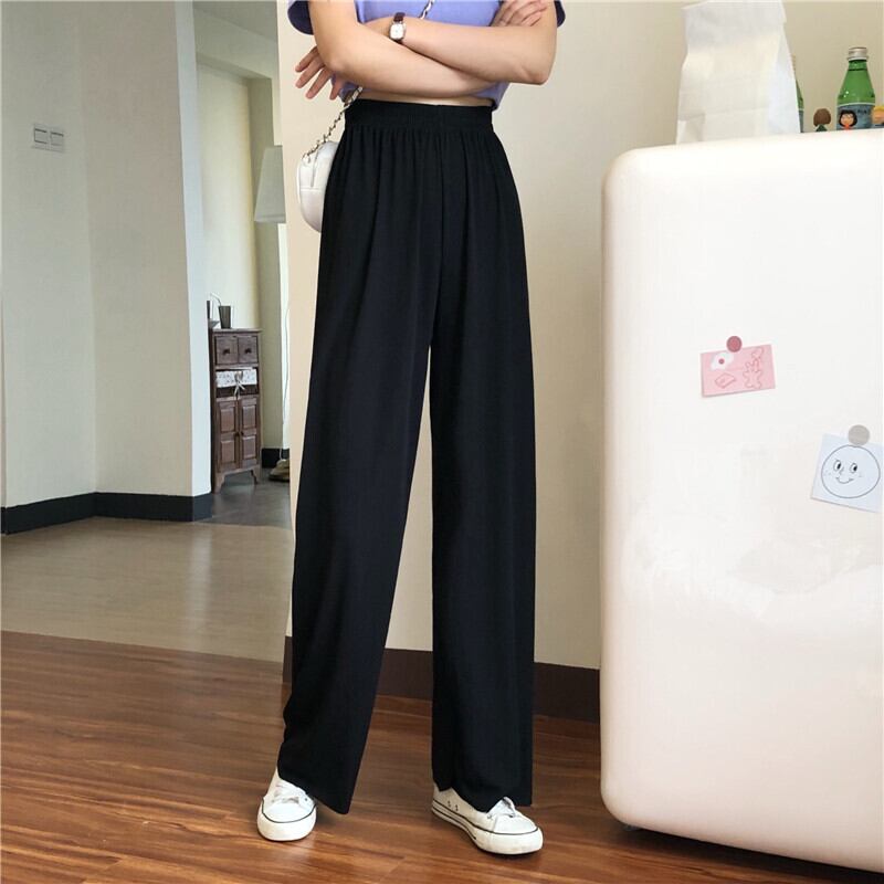 ハイウェストウェストカジュアルパンツ サマールーズブラック薄手 夏物 タオタオイ92728364066