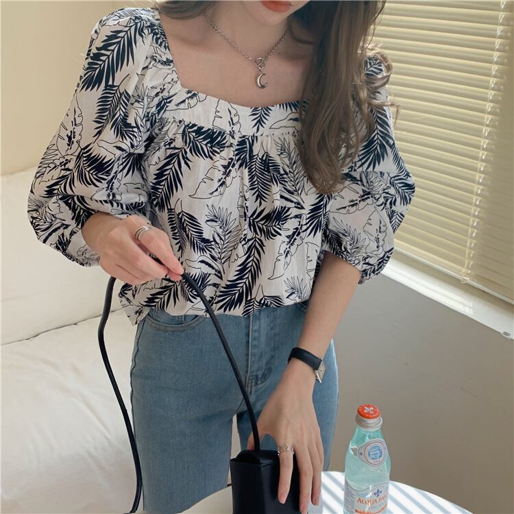 スタンダードカラーフローラルシャツ レディースサマースリーブスタイルブラウス レトロ 夏物 花柄 スクウェア タオタオイ23031695949