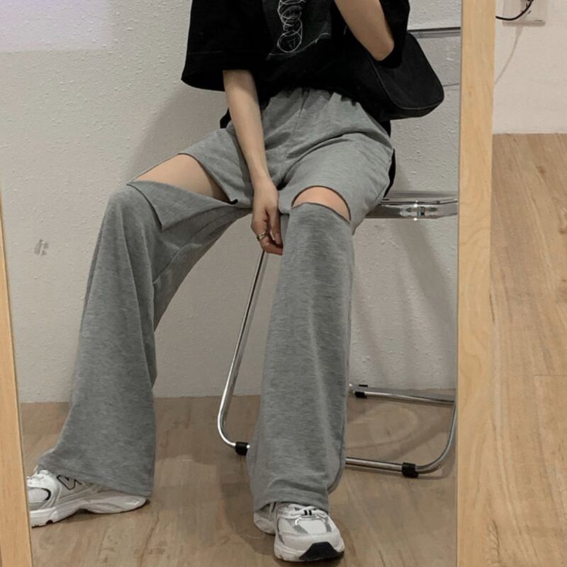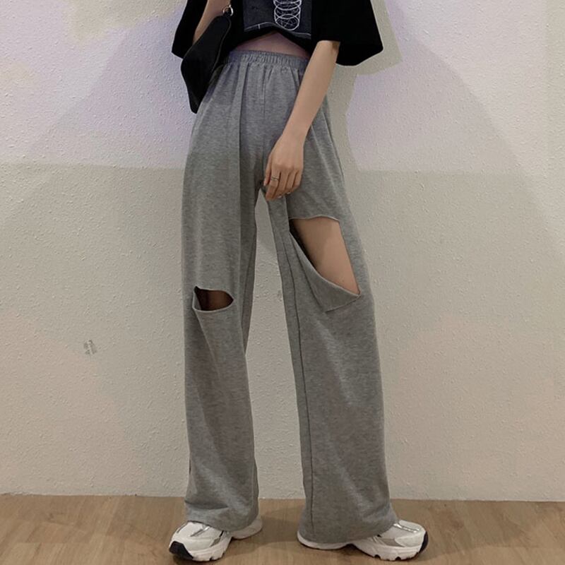 破れたパンツ2020年夏新バージョンの薄手のハイウエストカジュアルパンツ女性ルーズワイドレッグストレートレッグパンツスポーツパンツトレンド タオタオイ77136943401