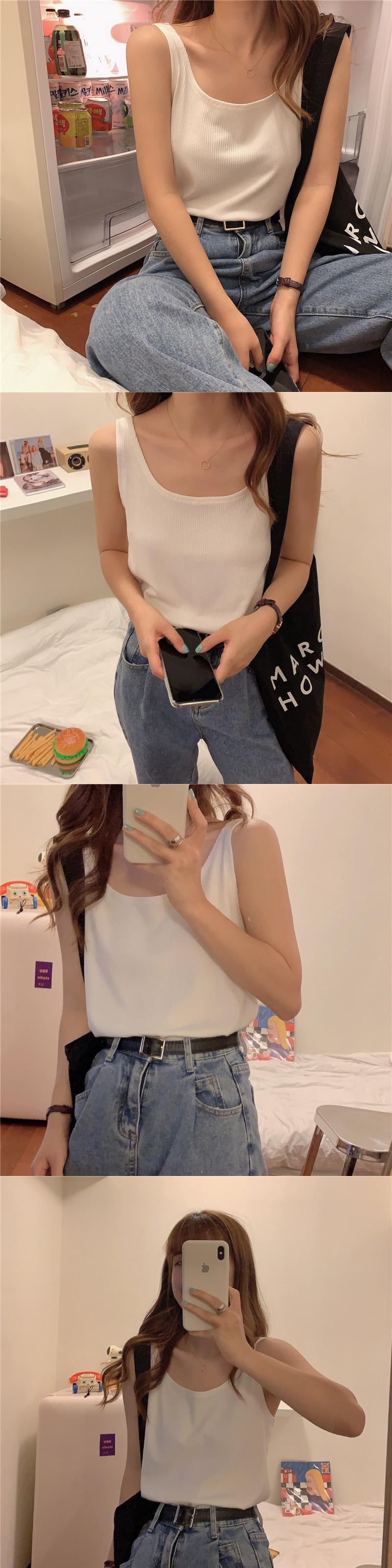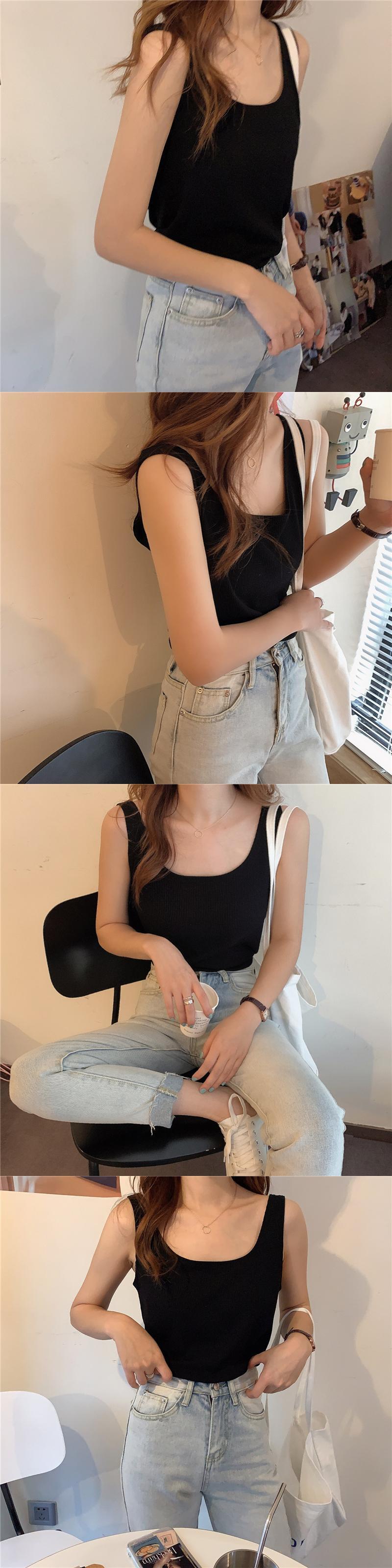 夏のヒョナの同じスタイルのキャミソールの女性は、無地のニットのボトミングトップを備えたトレンディで用途の広いスリムフィットのスーツを着ています タオタオイ44185124919