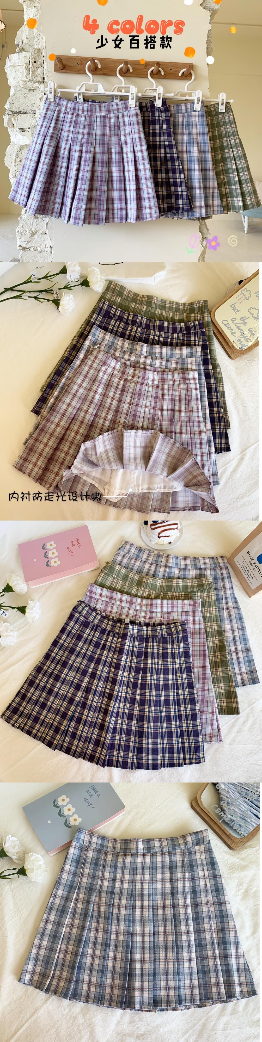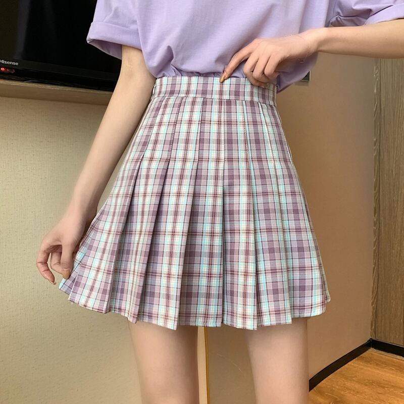 プリーツスカート サマーハイウェストウェストAライン格子柄 夏物 タオタオイ91371008778