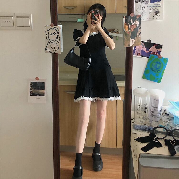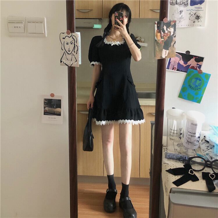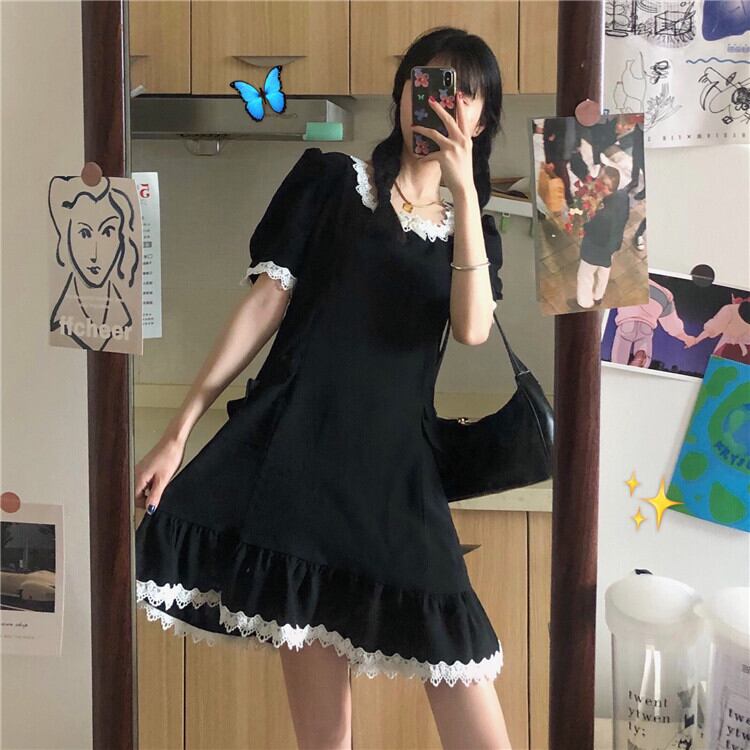 ロータスリーフリトルブラックドレス2020年夏フランスのニッチパフスリーブドレス女性気質Aラインスカートの新バージョン タオタオイ20720866674