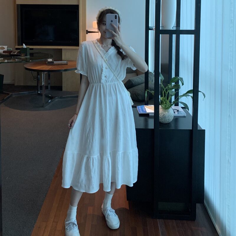 フランスのニッチなVネックドレス女性2020年夏の新しい妖精のドレス小さなウエストと細い気質のAラインスカート タオタオイ93859710616