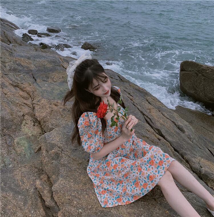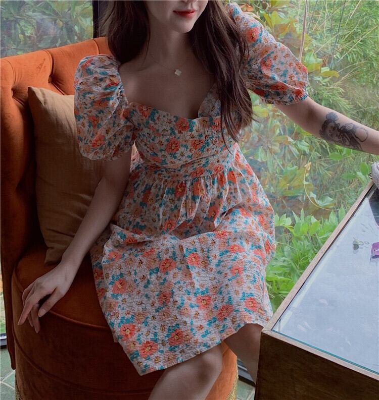 フレンチフローラルパフスリーブワンピースレディースサマースカート2020新夏デザインセンススモールフレッシュAラインスカート タオタオイ8462608237