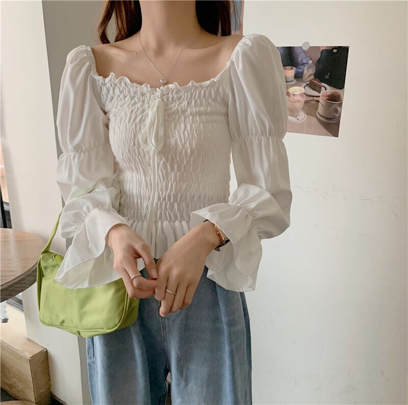 シフォン長袖シャツ女性デザインセンスニッチ2020年夏新バージョンのワイルドトランペットスリーブシャツトップ タオタオイ42654351251