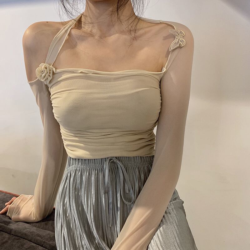 ワンショルダースクエアネック長袖Tシャツレディース2020年夏新バージョンスリムスリミングデザイントップス タオタオイ49784243797