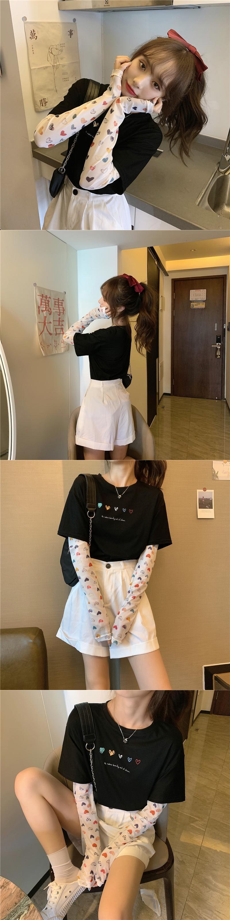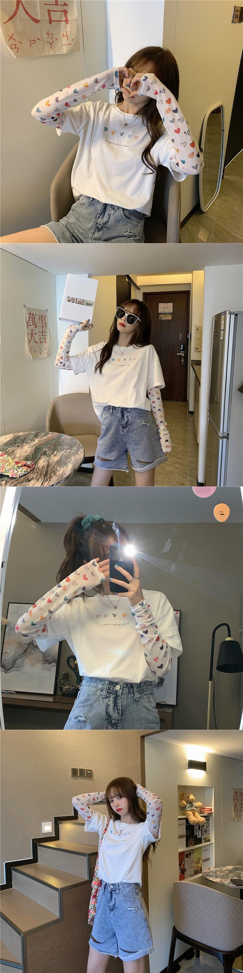 ホワイト長袖Tシャツレディース2020年初秋ネットレッドルーズフェイクツーピースデザイントップインタイドの新バージョン タオタオイ79310348244