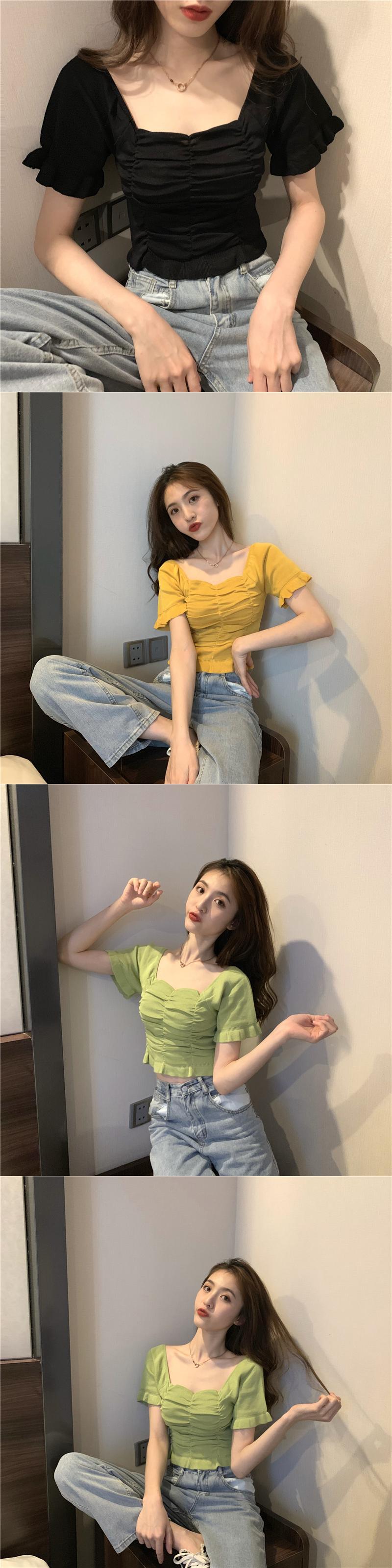ヒョナ風半袖セーターレディース2020年夏新作スリム・シンデザインショートスケミングトップ タオタオイ90549731952