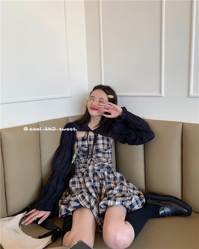 Can Yan Can Sweet Fried Street Suit Women Summer 2020 Style Tops Plaid Jumpsuit Two-piece Suit タオタオイ36472004078