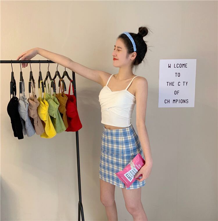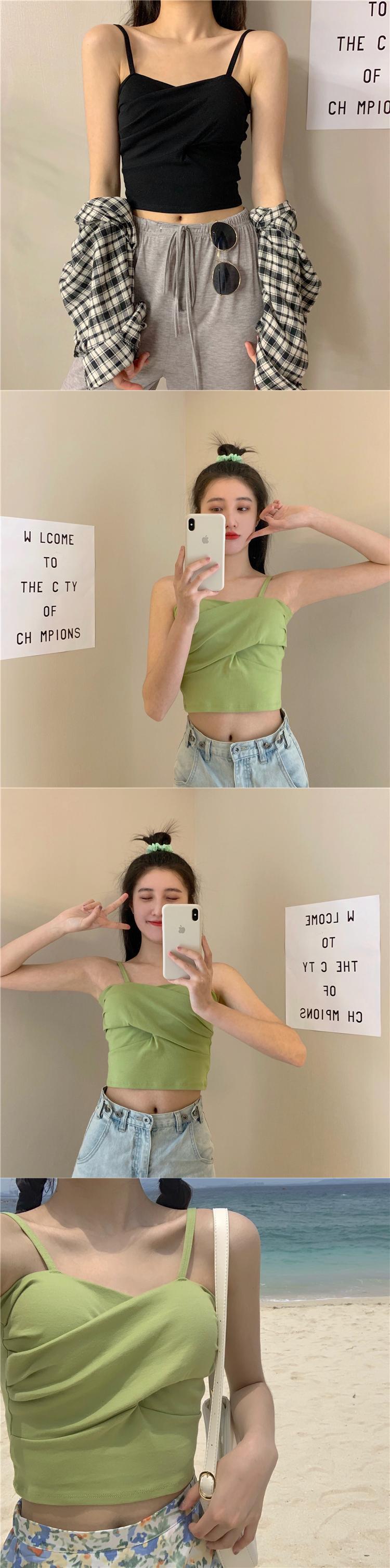 キムヒョナスタイルのキャミソールレディースサマーウェアトレンディなネットレッドの自己啓発ビューティーバックとセクシーなショートボトミングノースリーブトップ タオタオイ2207696295