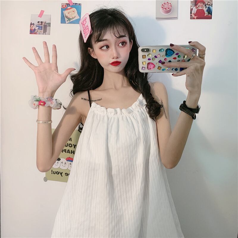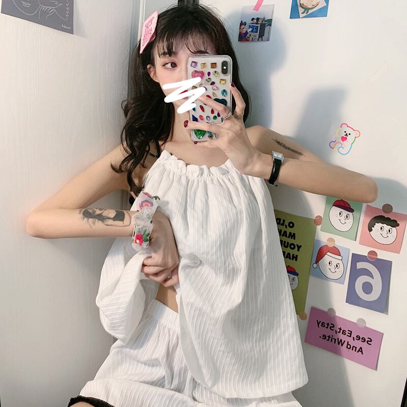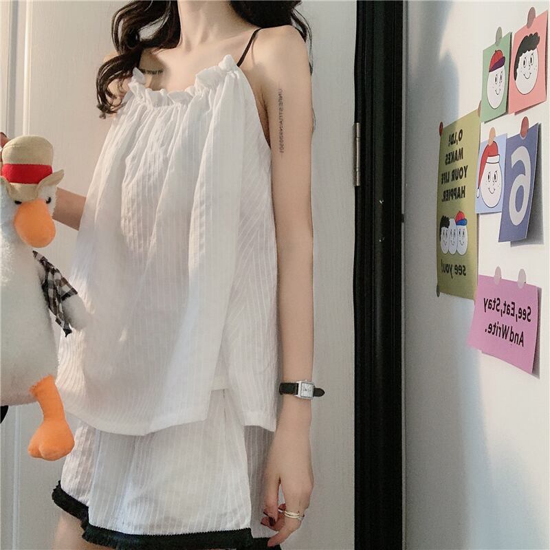 2020年夏新バージョンルーズセクシーホワイトサスペンダーパジャマスーツ女性カジュアルホームウェアツーピーススーツ タオタオイ50453518703
