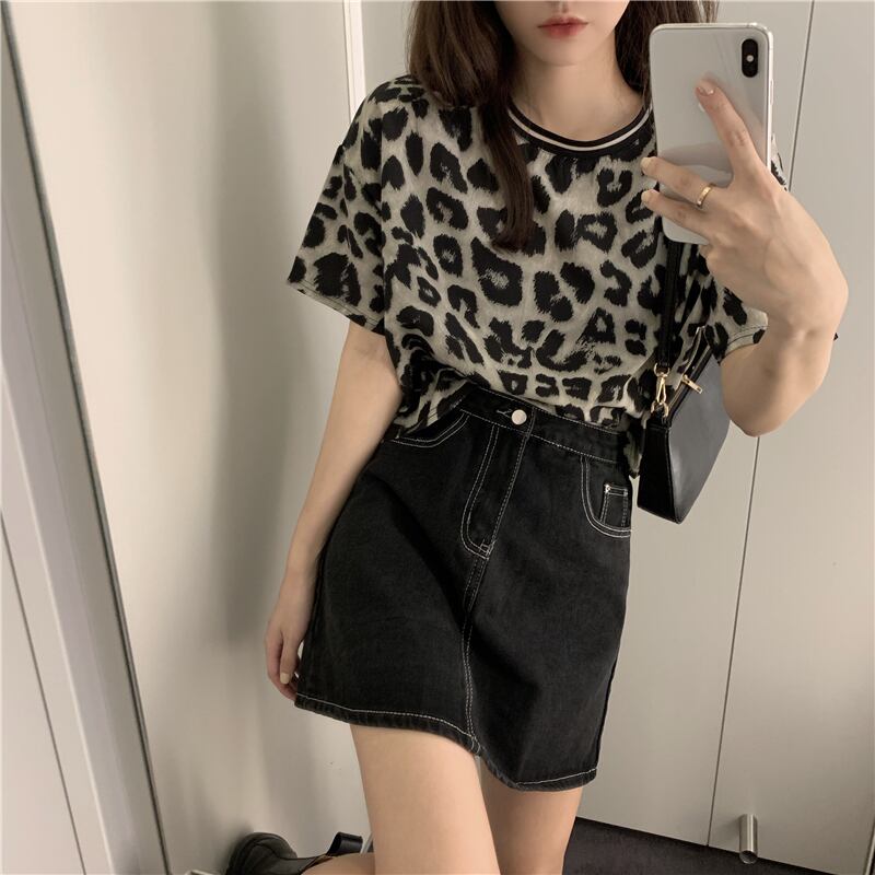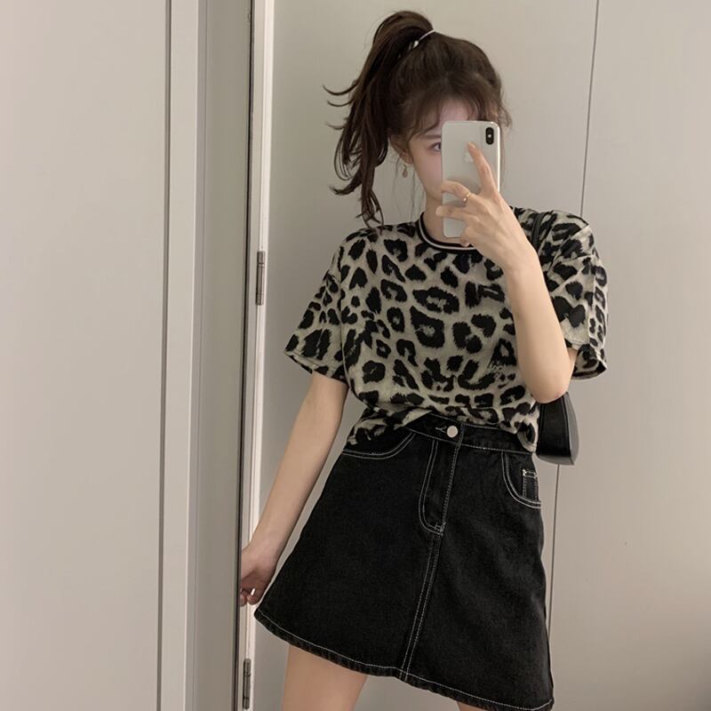 ヒョウ柄半袖Tシャツレディース2020年夏ネットレッドカップル新バージョンは、ルーズなデザイン感の薄いトップスを着ています タオタオイ74356677137