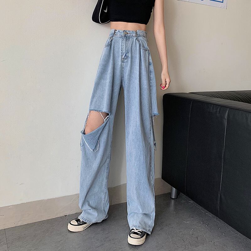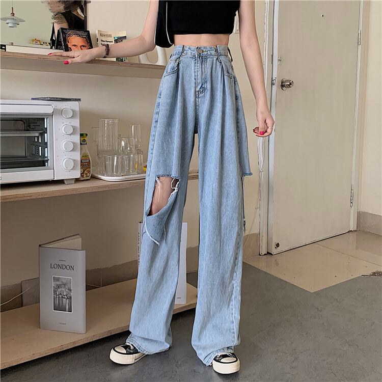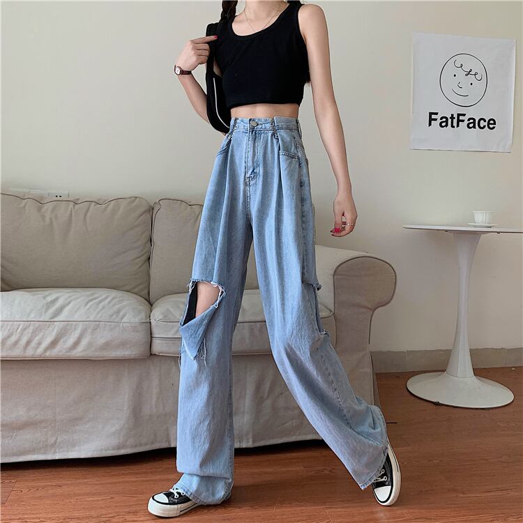 ライトカラーハイウエストリップドジーンズレディース2020年夏新バージョンのヒョナスタイルモップパンツルーズワイドレッグパンツ タオタオイ87138052961