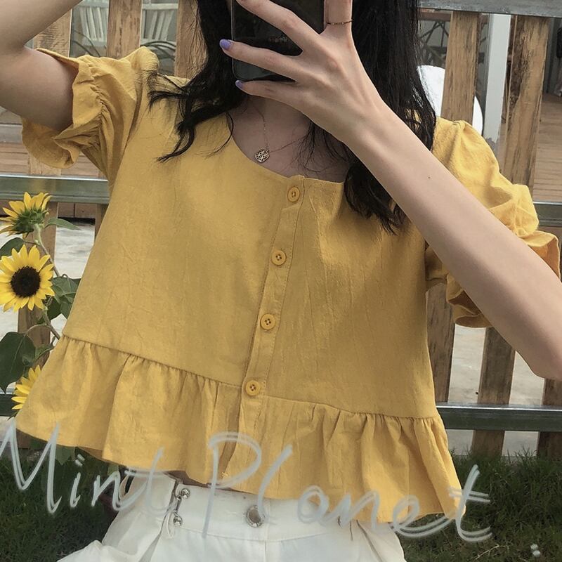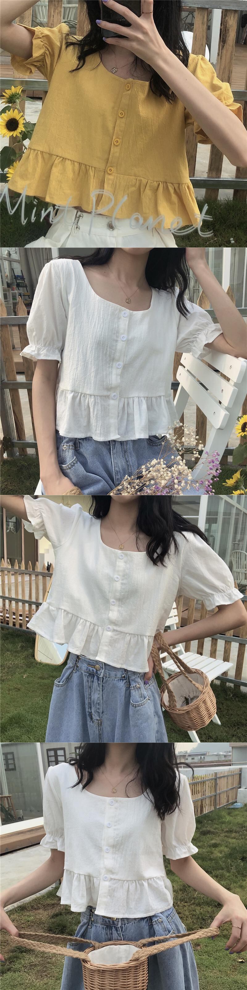 フランスのスクエアカラー半袖シャツ女性2020年夏新しいショートデザインニッチシャツパフスリーブトップ タオタオイ51092219340