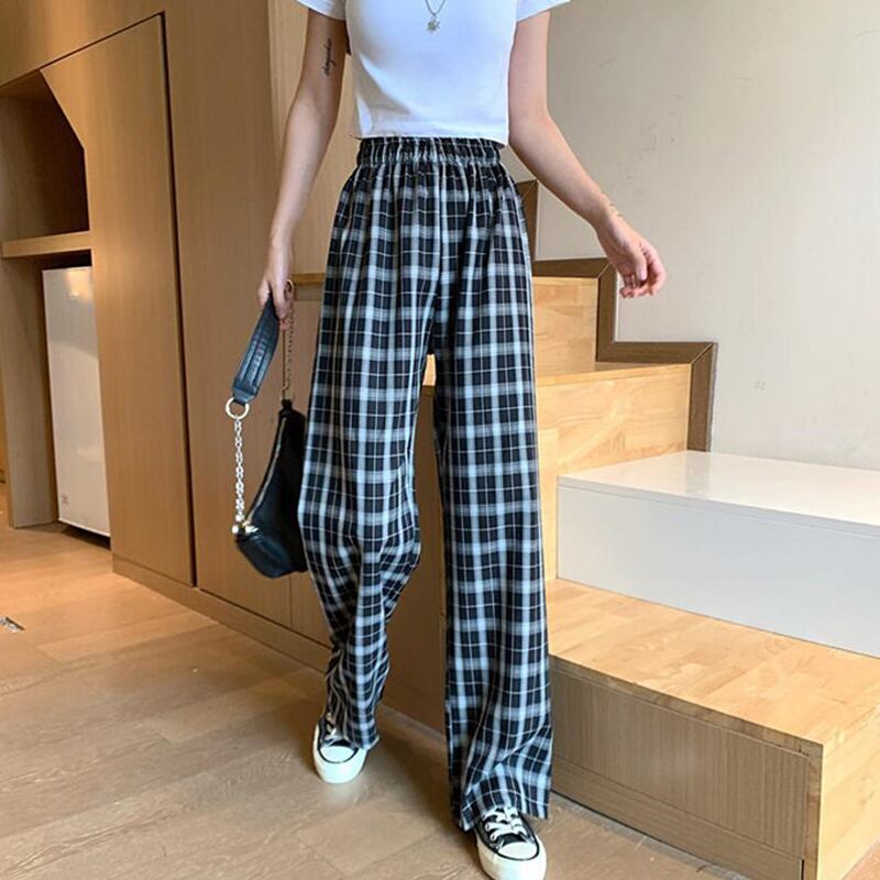薄手のチェック柄パンツウエストパンツレディース2020年夏スタイルルーズストレートワイドレッグパンツモップパンツ タオタオイ27021660502