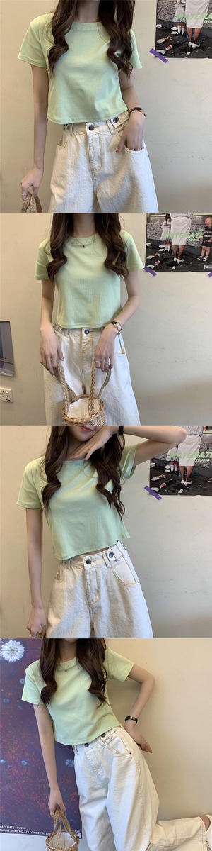2020年夏新バージョンのピュアカラー半袖Tシャツレディーススリムスリミングインネットレッドショートクロップドアンビリカルトップ タオタオイ44893141469
