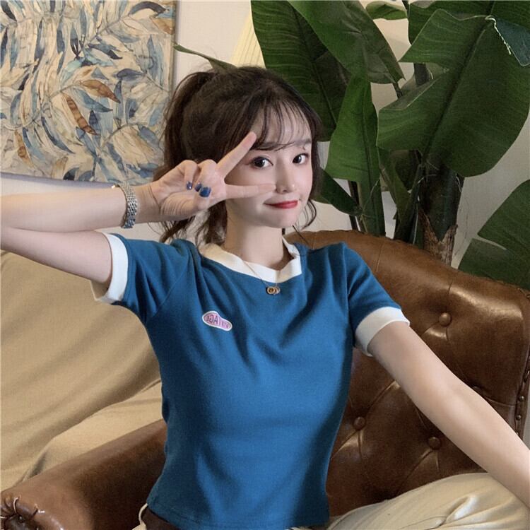 スリムブルー半袖Tシャツ女性2020年夏ワイルドシンインネットレッドスーパーファイアショートトップの新バージョン タオタオイ97564642132