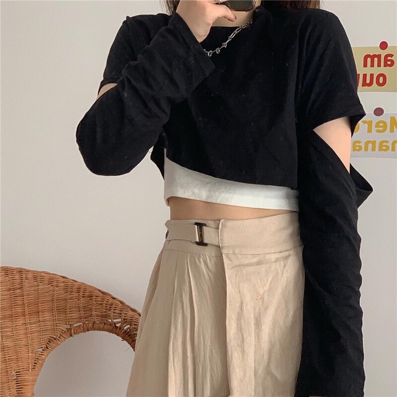色:アプリコットパンツのシングルピース,ツーピースの黒と白のトップ