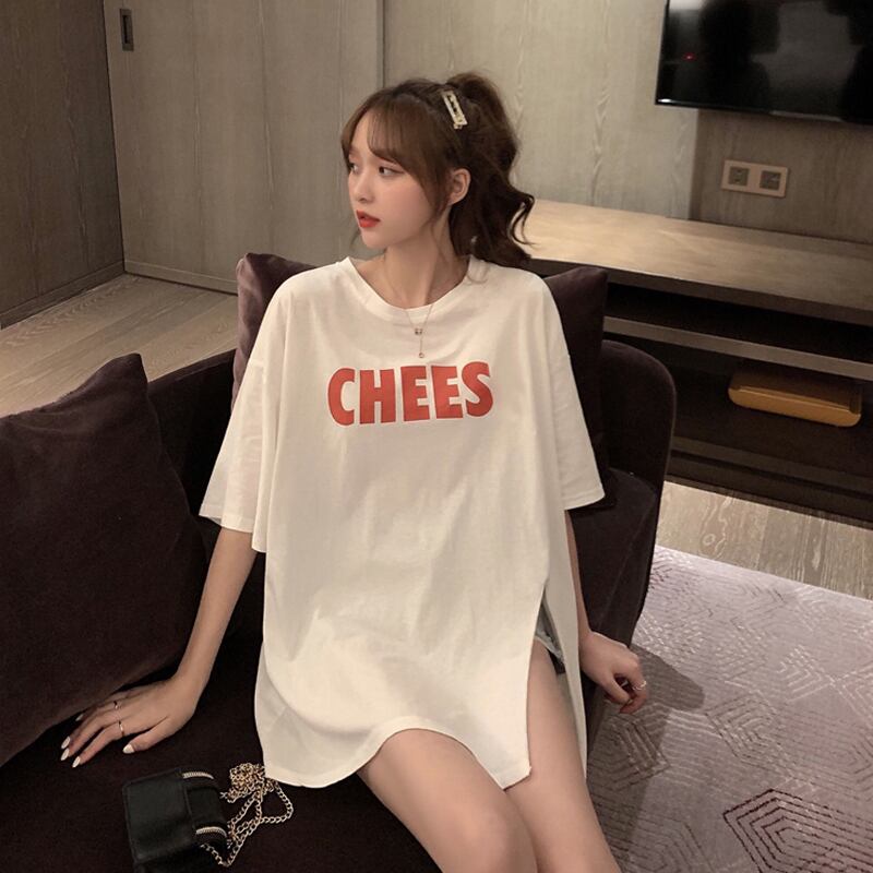 ルーズデザインのバージョンスプリットトップ2020年夏新しいネットレッドミドルレングスホワイト半袖Tシャツ女性イン タオタオイ52726473805