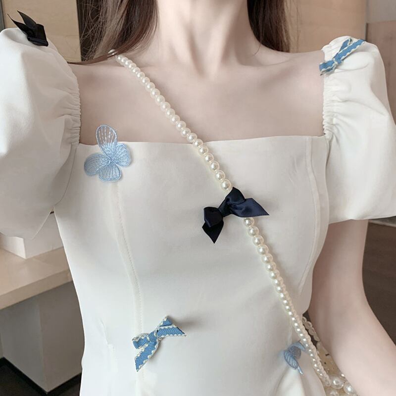 ボウスカート2020年夏新バージョンのフレンチスクエアカラーホワイトドレス女性薄気質Aラインスカート タオタオイ72463033912