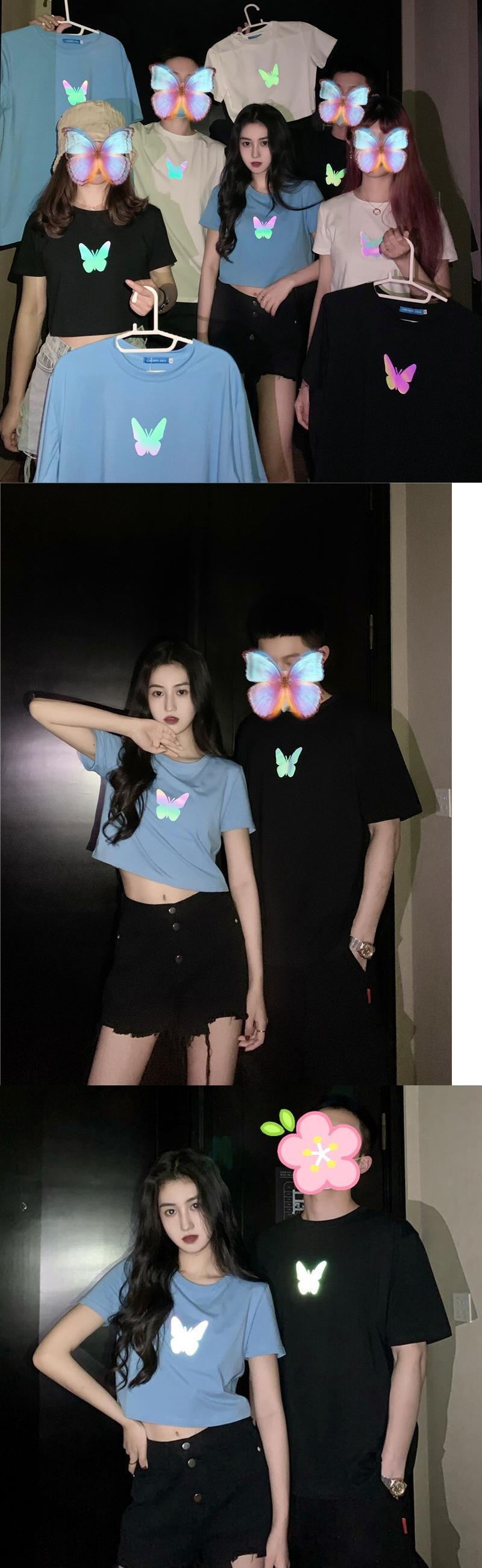 ネットレッドカップルウェア2020年夏新作半袖Tシャツ女性インスーパーファイアバタフライプリントショートトップトレンド タオタオイ22393242548