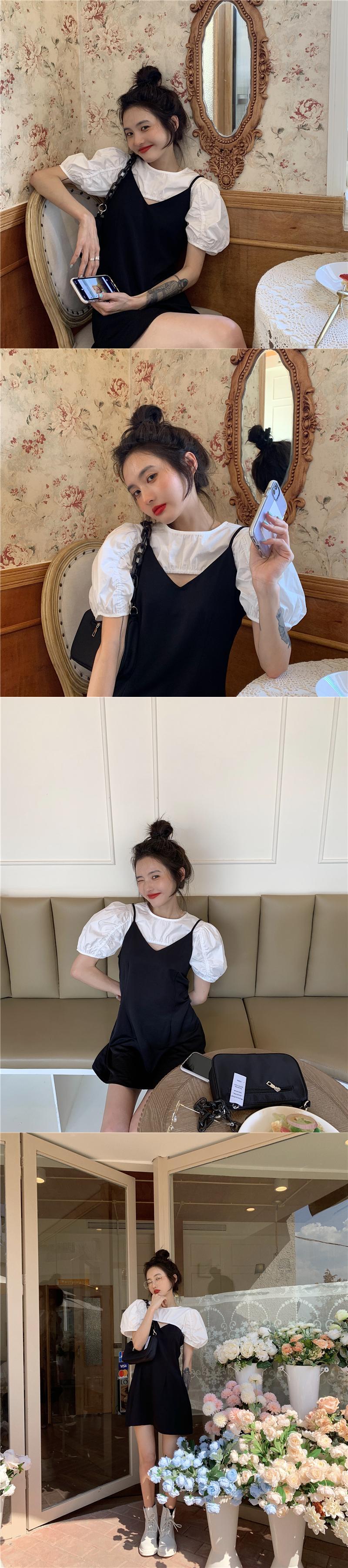 色:白いショールのワンピース,ブラックサスペンダードレスワンピース