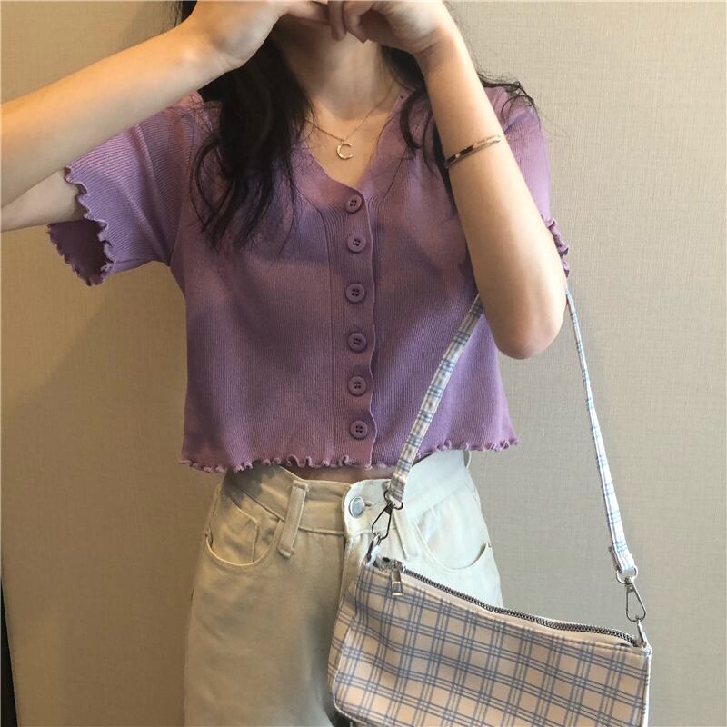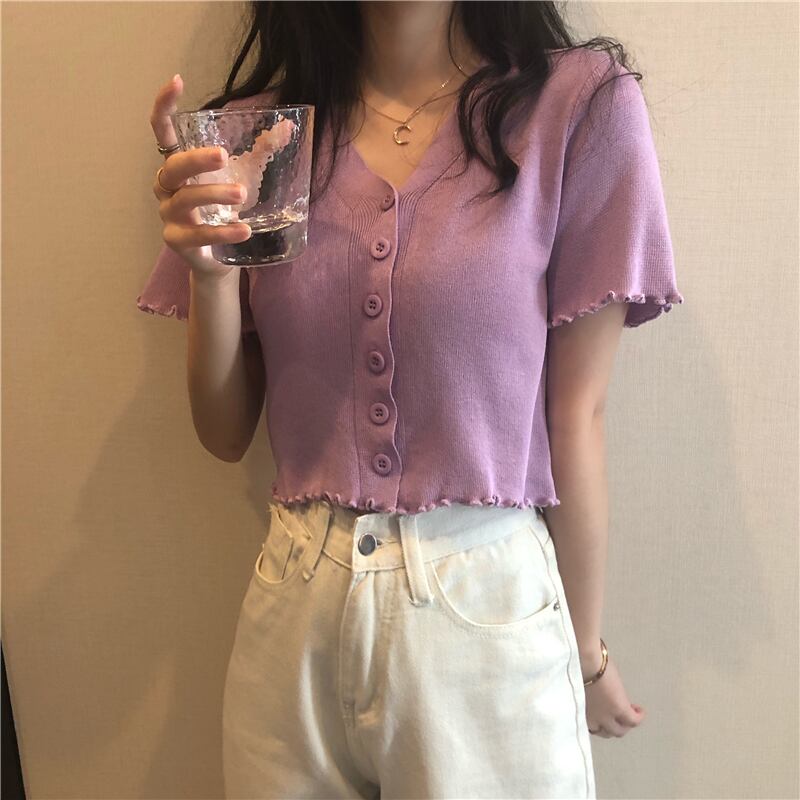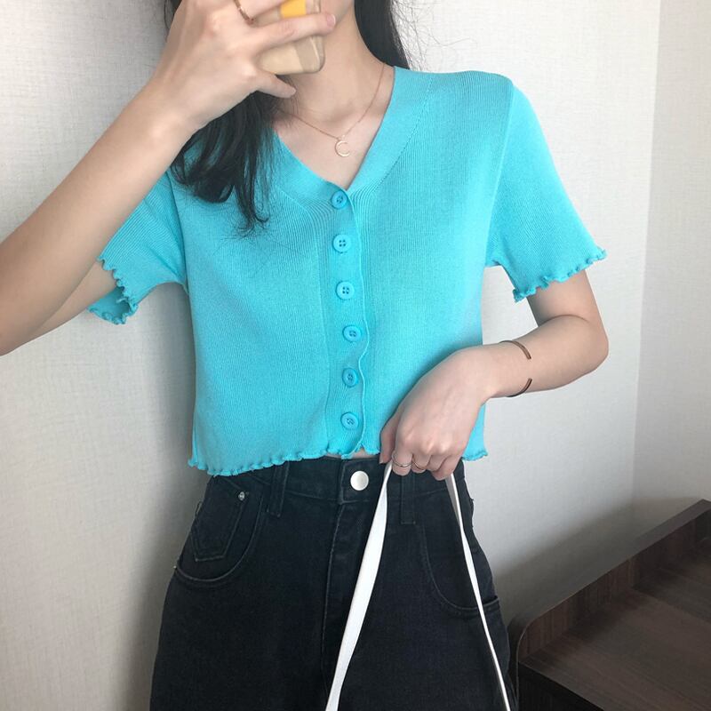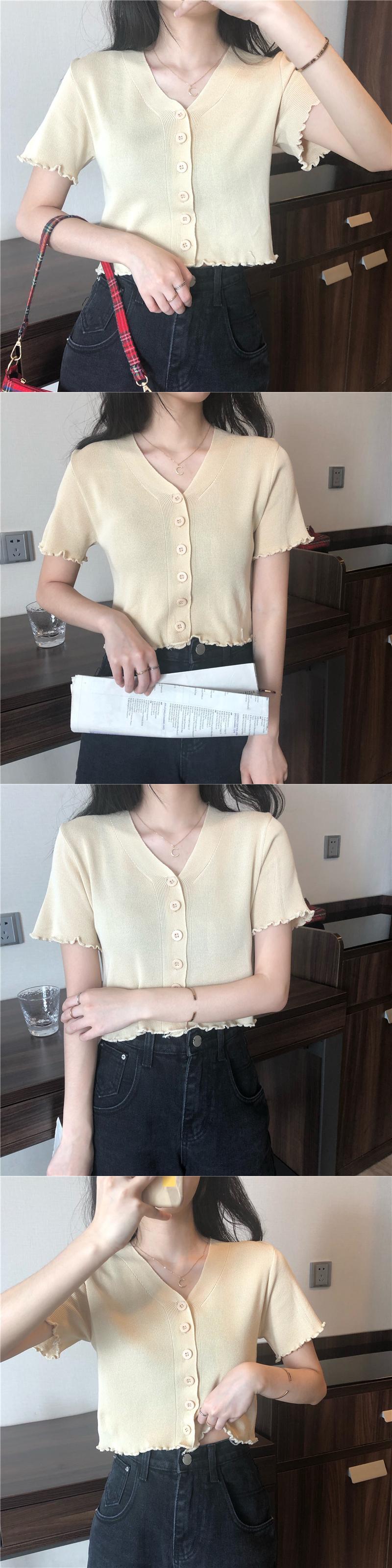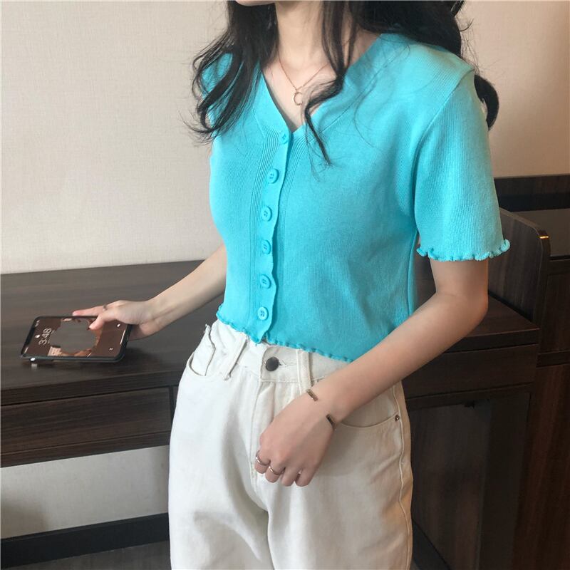 2020年夏の新作無地Vネック半袖セーターレディース薄手スモールカーディガンジャケットオールマッチショートトップ タオタオイ4474616090