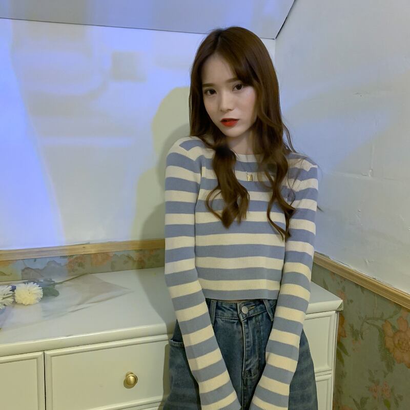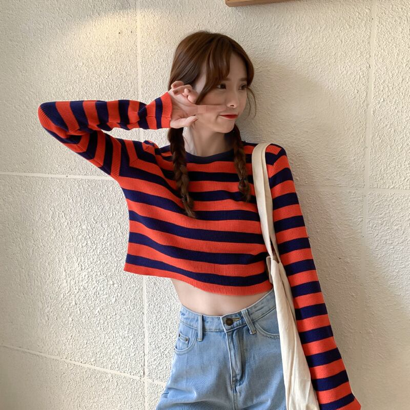 薄手のストライプ長袖セーターレディース2020年秋新作バージョンルーズショートジェントルスタイルアウタージャケット タオタオイ45821824966