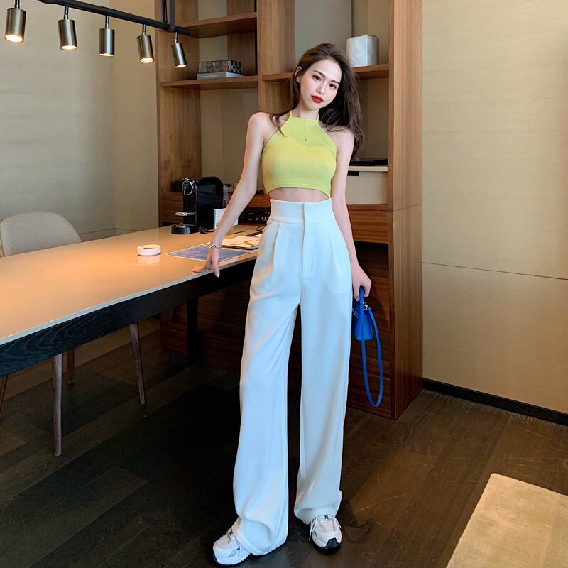 ウエストホワイトカジュアルパンツレディース2020年夏ルーズストレートワイドレッグパンツの新バージョンは薄くて用途の広いスーツパンツ タオタオイ35847422241