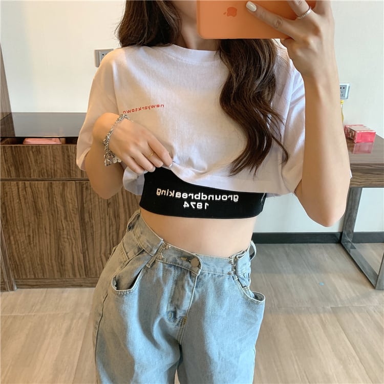 インネットレッドスーパーファイアショートクロップトップ2020年夏新作ルーズホワイト半袖Tシャツ女性トレンド タオタオイ34960927585