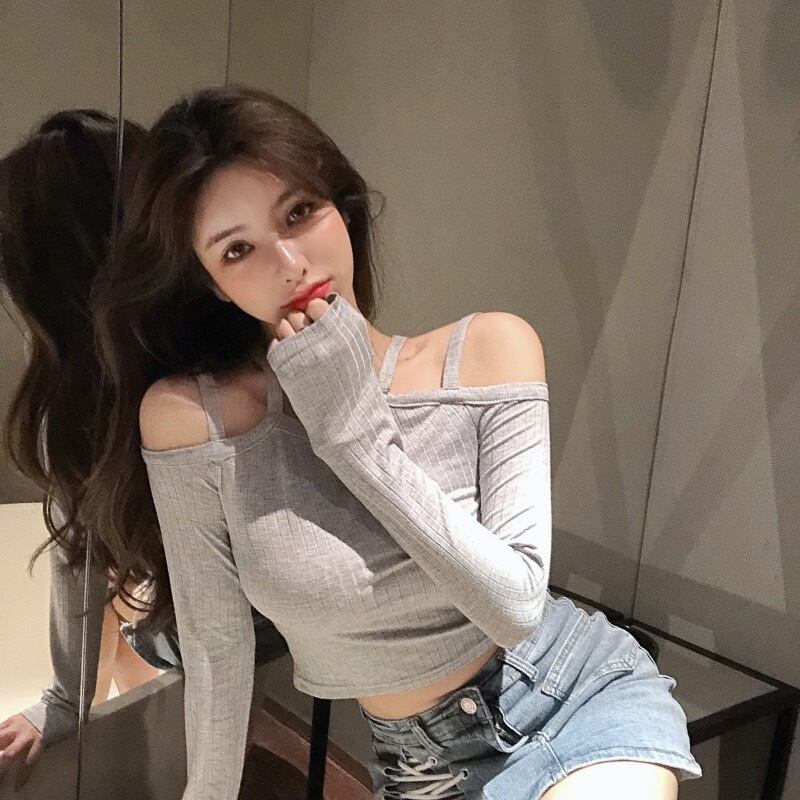 オフショルダーの長袖Tシャツレディース2020年夏の新バージョンのデザイン、スリムなスリミング、丁寧なマシンクロップトップ タオタオイ36615153193