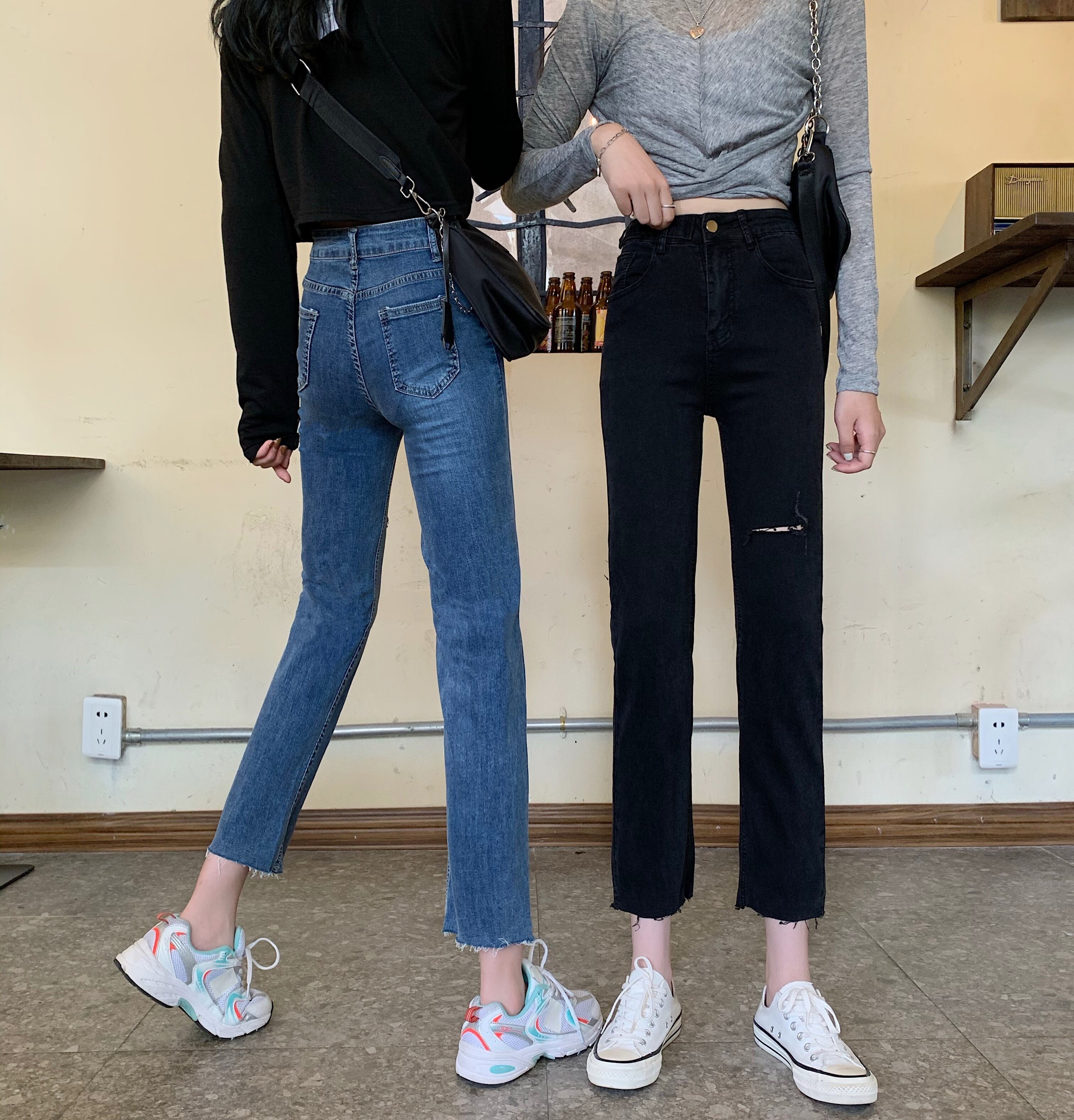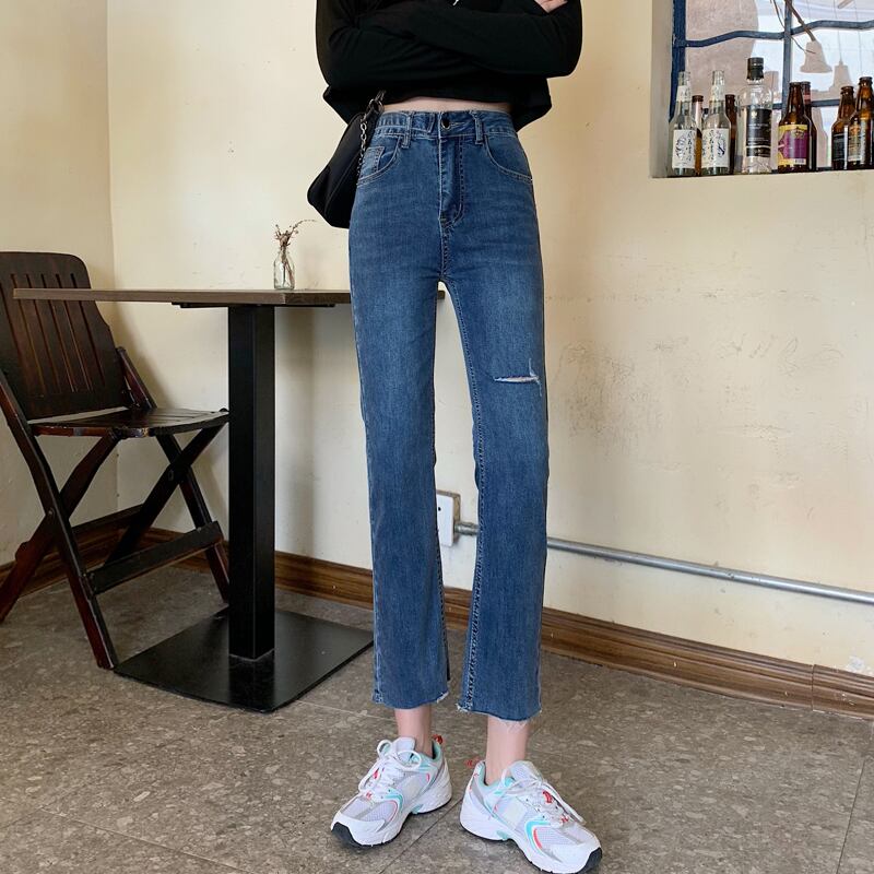 ウエスト破れたジーンズ女性の潮汐2020年夏新バージョンの薄いレギンスオールマッチ9ポイントパンツ タオタオイ81897071949