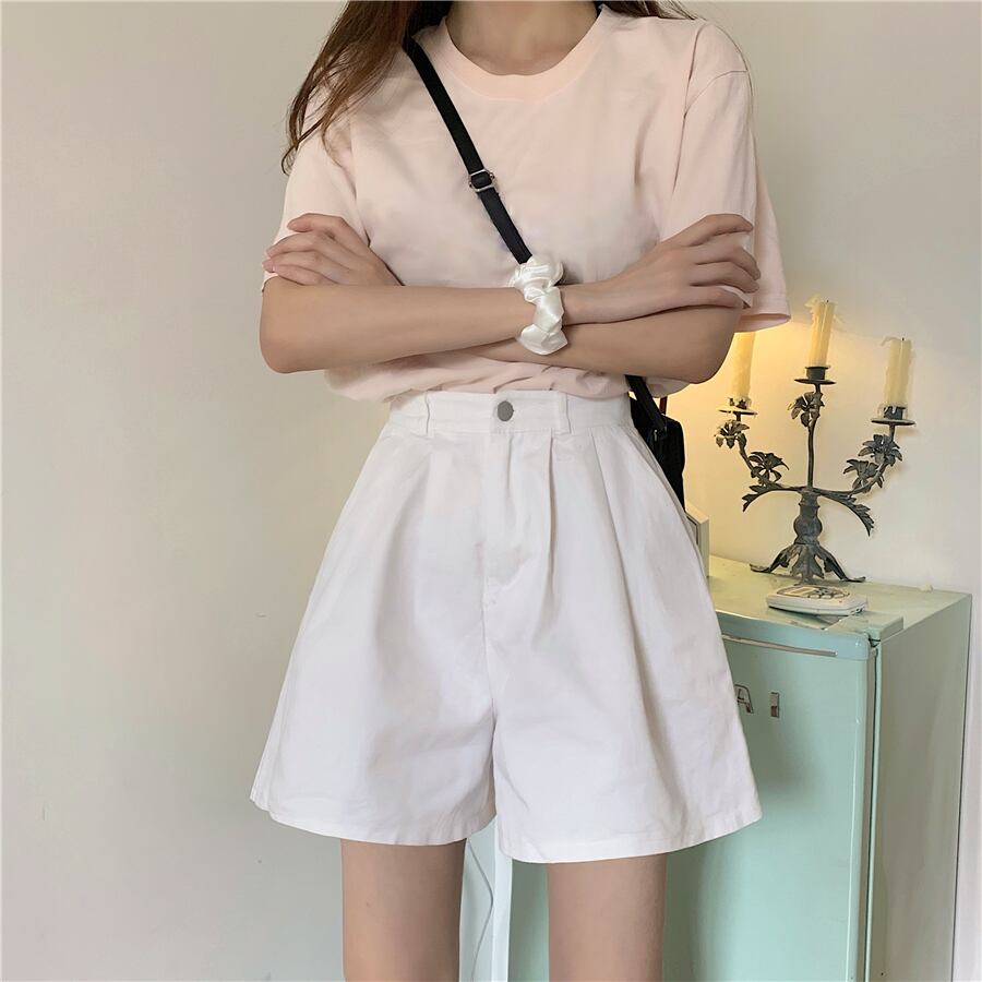 -ウエストカジュアルパンツ女性の2020年夏の新しいルーズワイドレッグパンツストレートレッグパンツは薄いワイルドショーツホワイトパンツでした タオタオイ83185071514