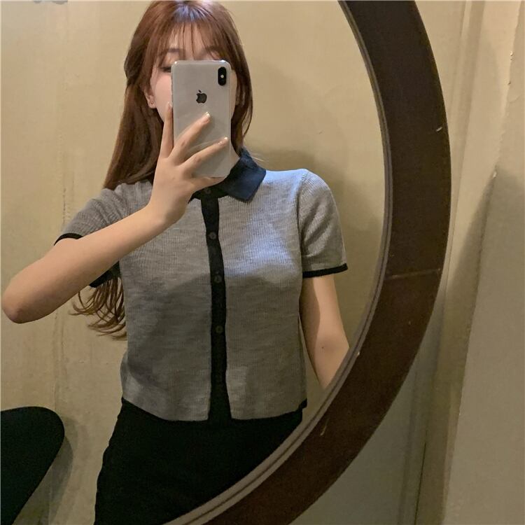 半袖セーターレディース2020年夏新バージョンのネットレッドショートカーディガンスリムスリミングウエスタンスタイルオールマッチトップ タオタオイ73351699303