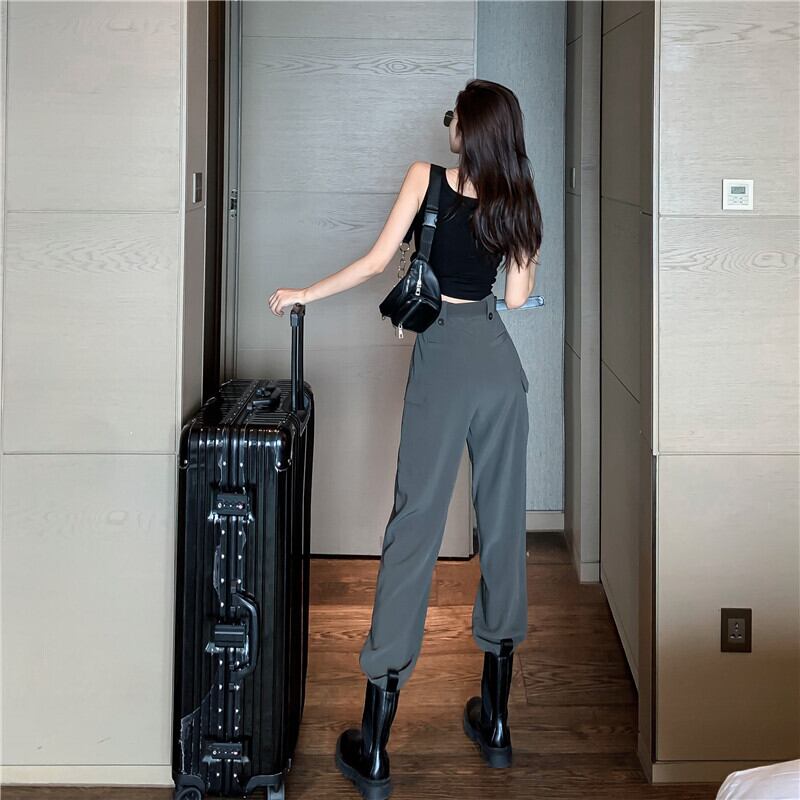 オーバーオール2020年夏新バージョンのハイウエストドレープカジュアルパンツレディースシンナインポイントパンツシンウエストパンツ タオタオイ16346355267