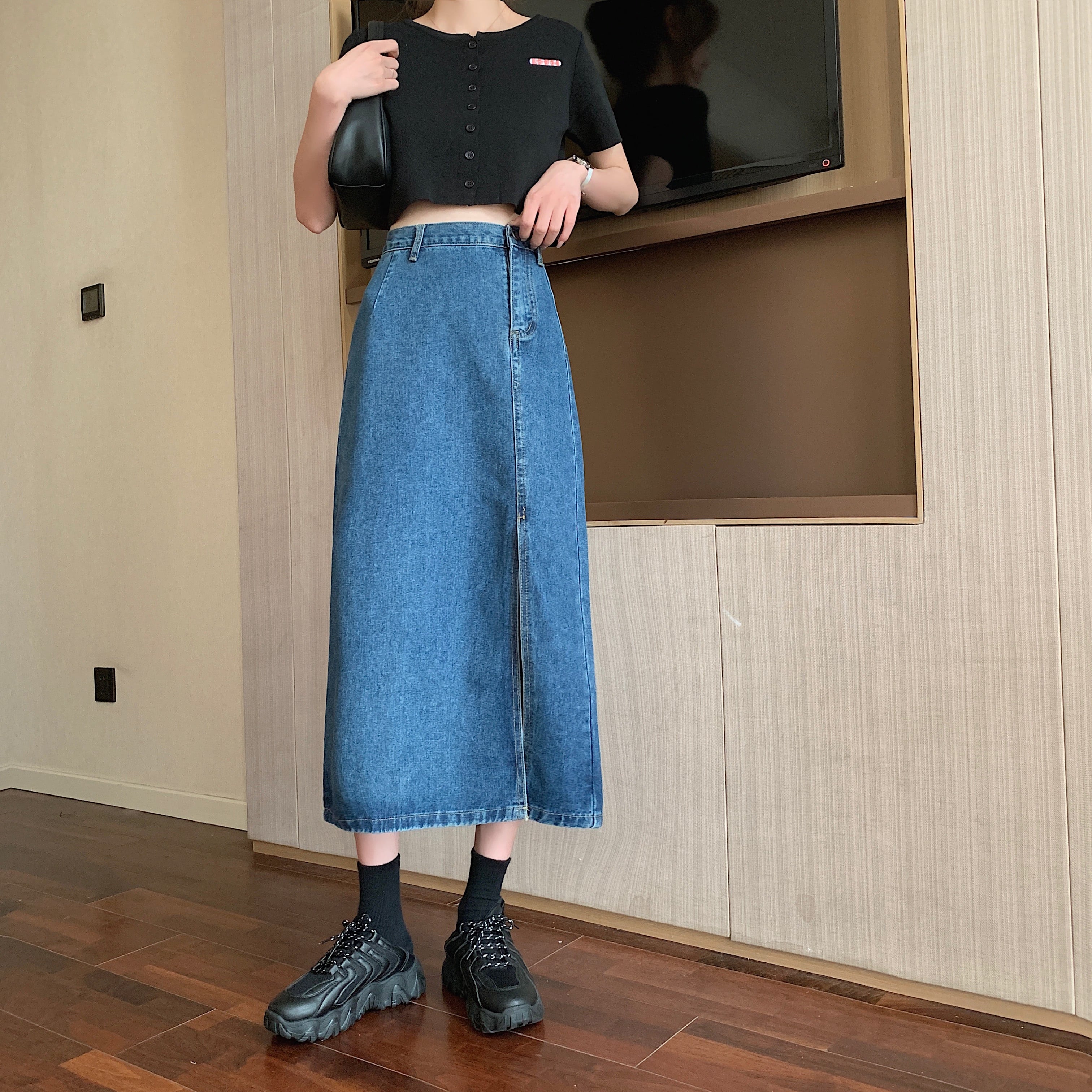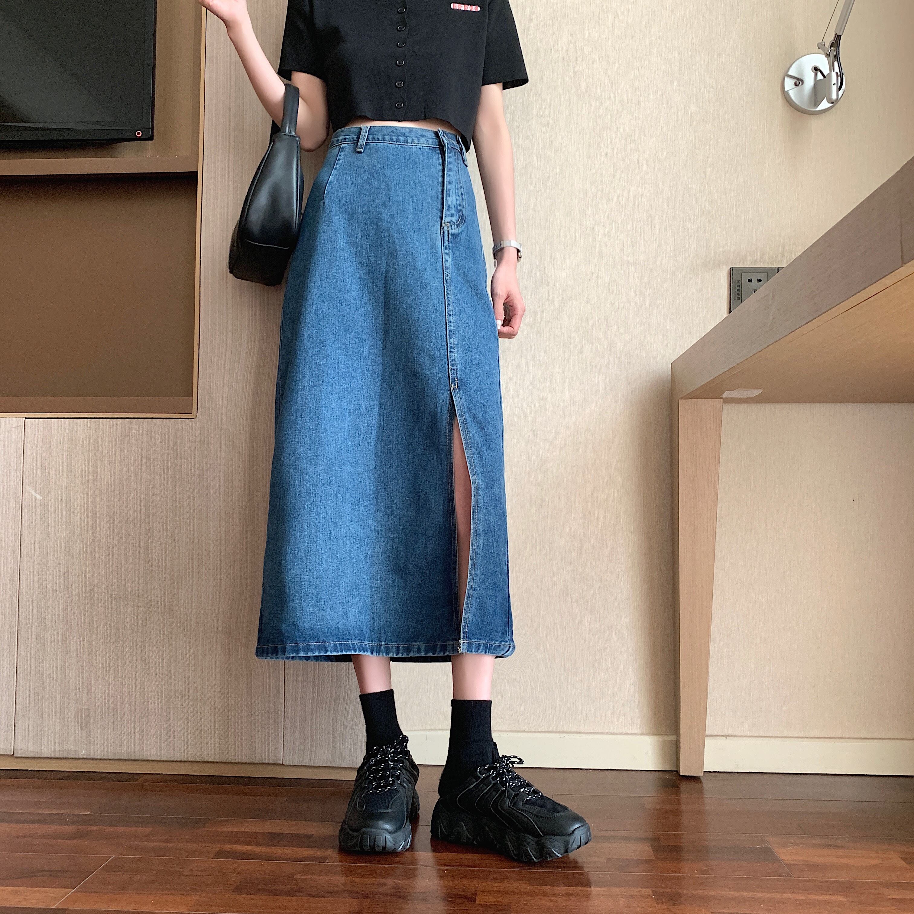 スプリットデニムハイウエストスカートレディース2020年夏新作ファッションデザインセンスレトロミドル丈Aラインスカート タオタオイ29936306506