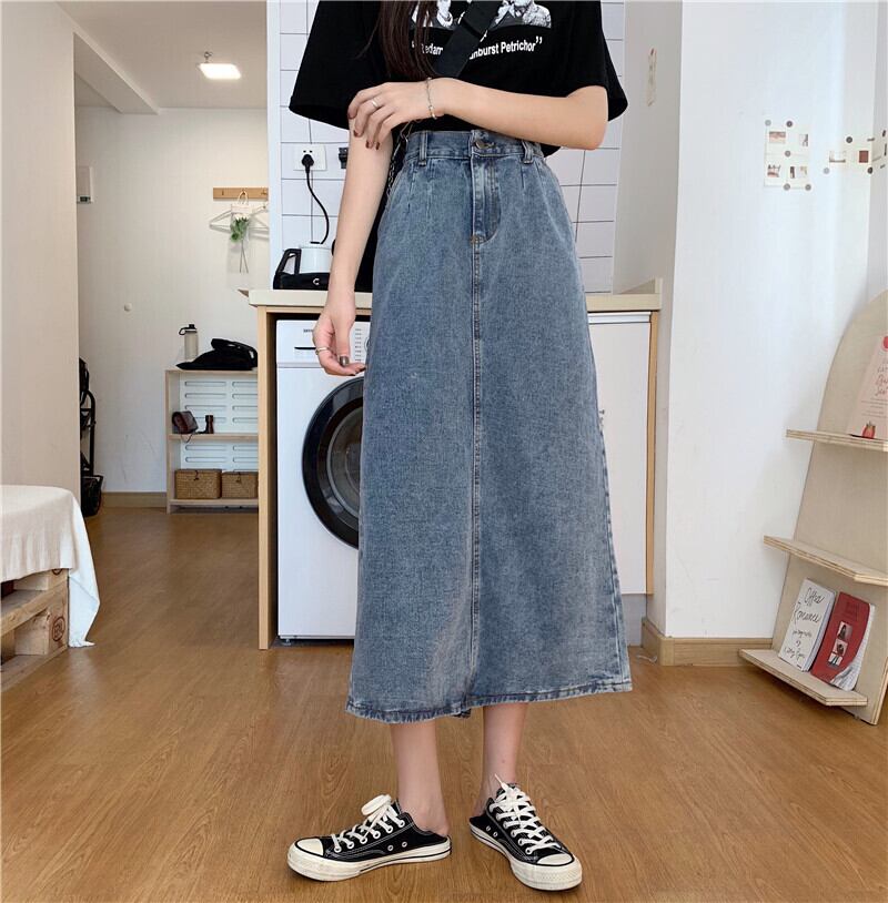 2020年夏の新しいレトロなハイウエストデニムスカート女性のbmスプリットスカートは薄くて用途の広いロングAラインスカートです タオタオイ88129552373