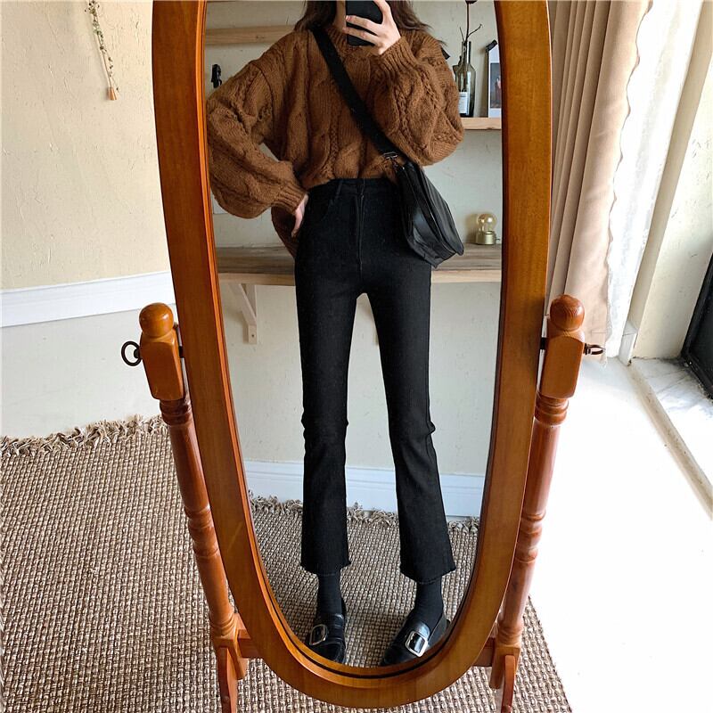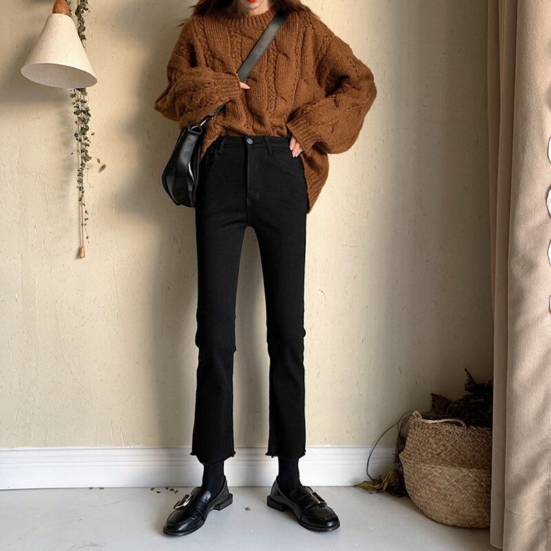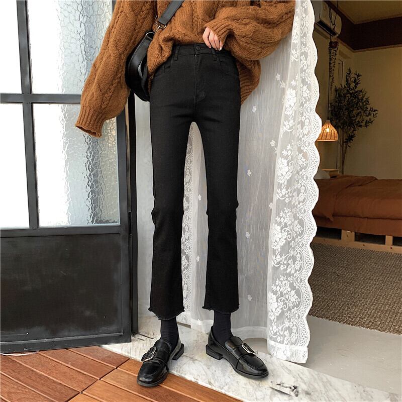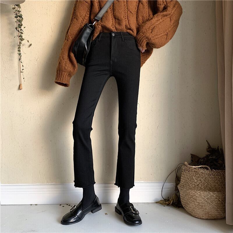 -ウエストジーンズレディース2020年初秋ストレッチオールマッチストレートレッグパンツの新バージョンは、薄くて生のエッジのクロップドパンツです タオタオイ34354964657