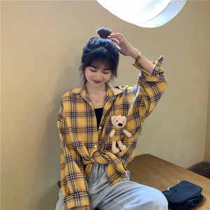 センスニッチポケットベアチェック柄シャツレディース2020年秋新作ミドル丈長袖トップトレンド タオタオイ61935360636