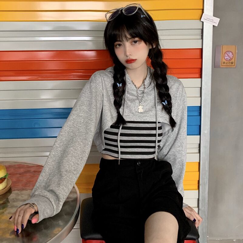 秋のファッションスポーツセーター女性の2020年秋新しいルーズで薄いショートトップ、へそが露出 タオタオイ19783039994