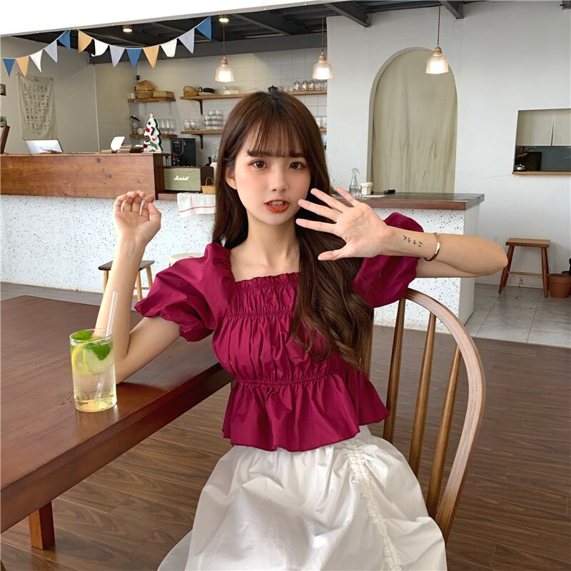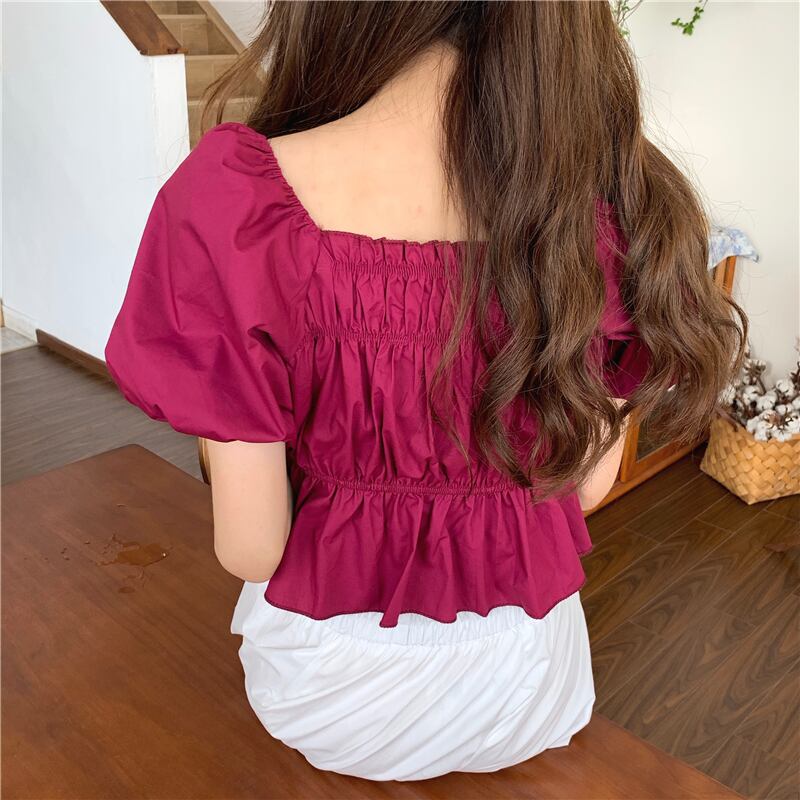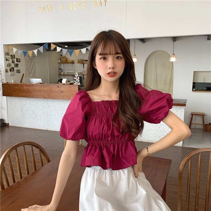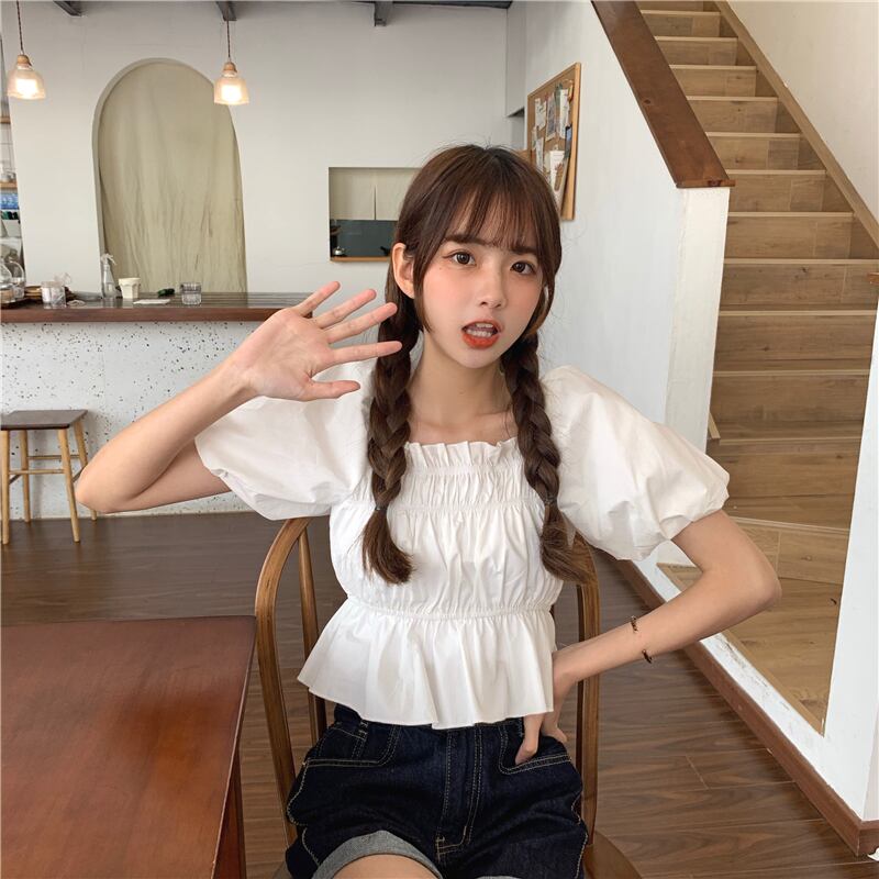 スクエアカラーフレンチパフスリーブホワイトシャツレディース2020年夏新作スタイルショートニッチデザインブラウス タオタオイ20078462763