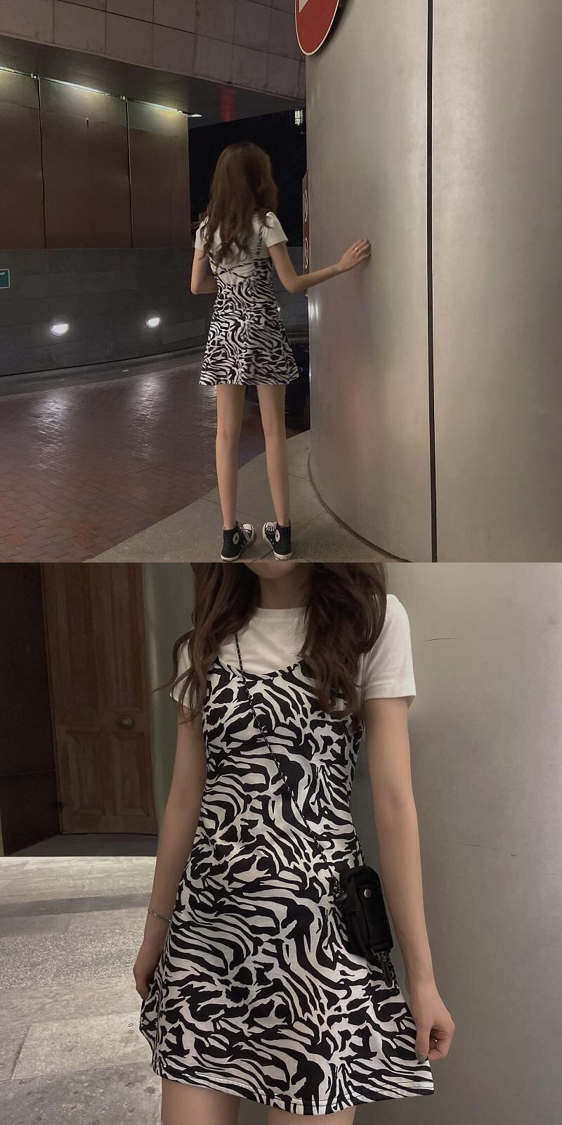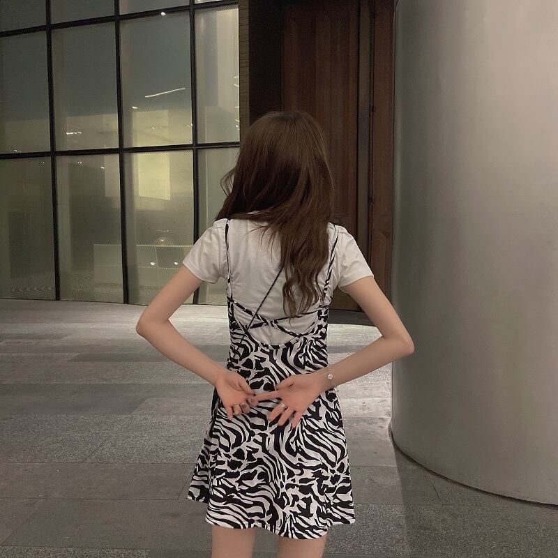 ゼブラ柄ワンピース女性2020年夏新作スモールスリングスカートウエスト細いaラインスカート気質スカート タオタオイ12177923331