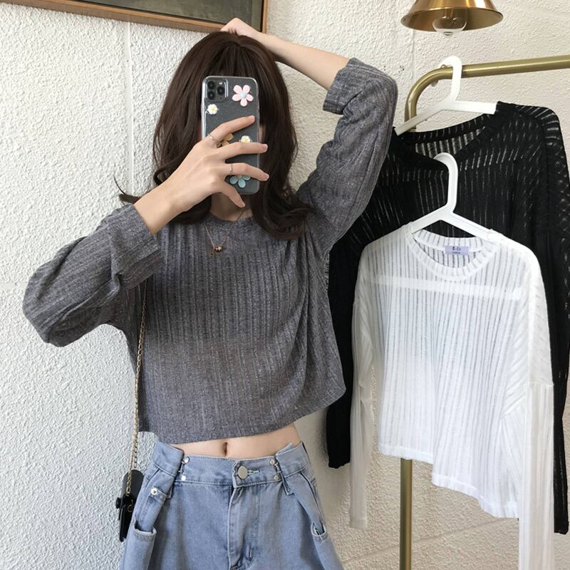 ネットレッド長袖Tシャツ女性インタイド2020年夏ワイルドルーズショートアンビリカルサンスクリーントップの新バージョン タオタオイ81583600733