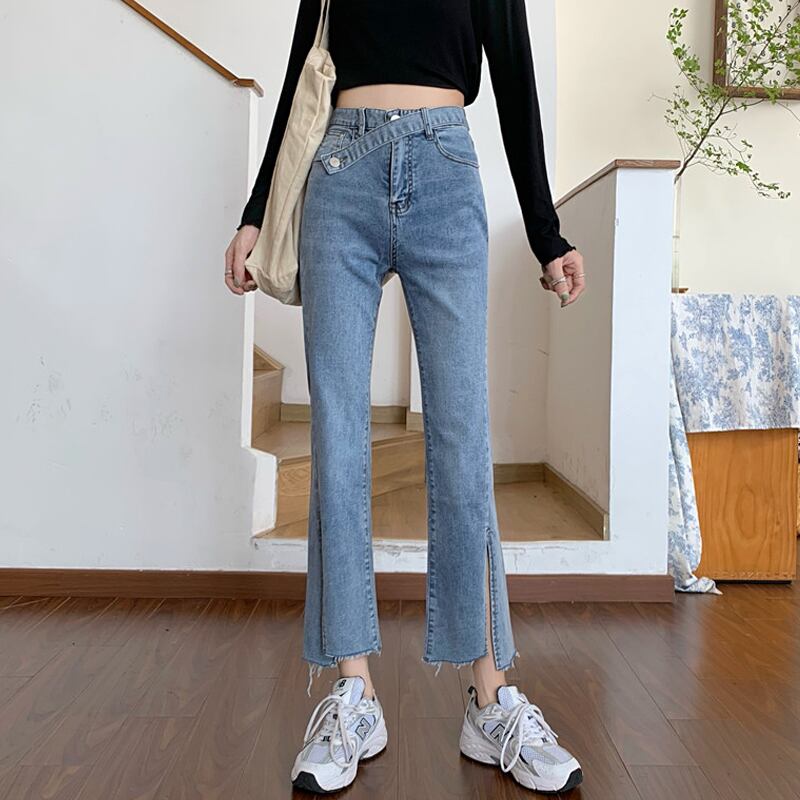 ややハイウエストジーンズレディース2020夏新作薄パンツスモールワイルドスリム9点ベルボトム タオタオイ27193773494