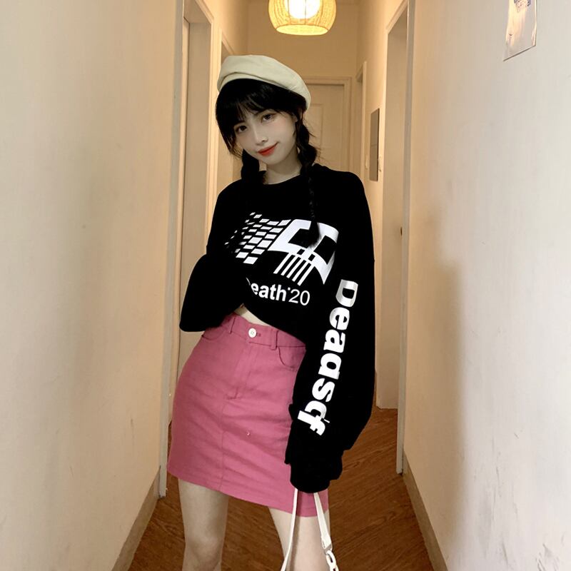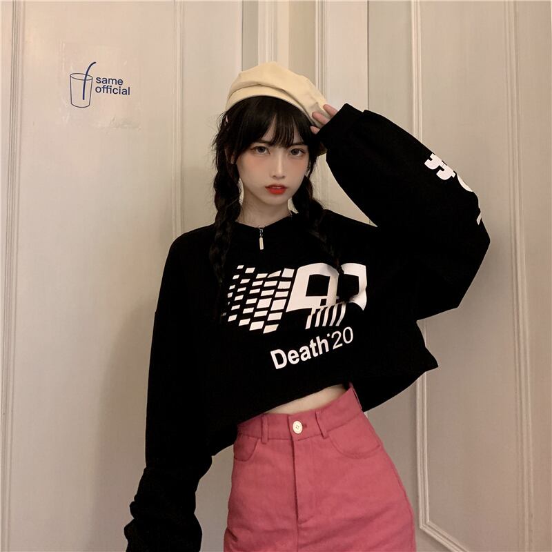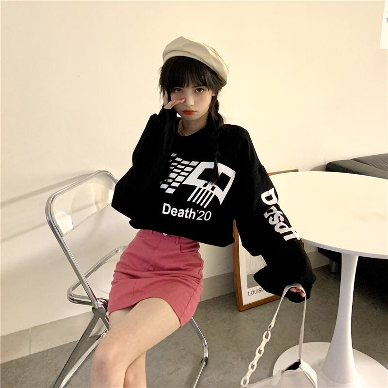 薄いbf風の手紙印刷長袖セーター女性のバージョン2020年秋新しいルーズで薄いショートトップ タオタオイ80540949867