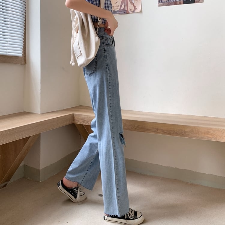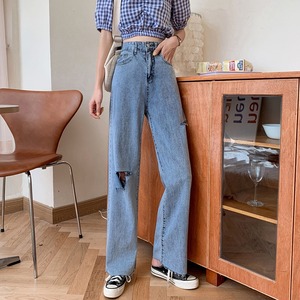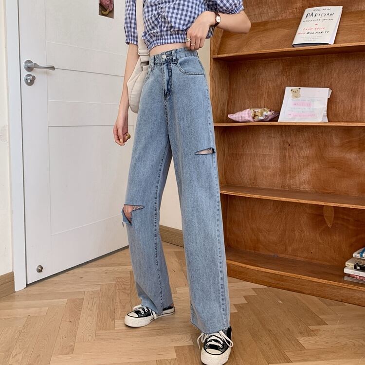 ハイウエストスリムジーンズ女性2020年夏のバージョン新しいルーズストレートワイドレッグパンツリッピングパンツ多目的パンツ タオタオイ63222517867